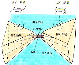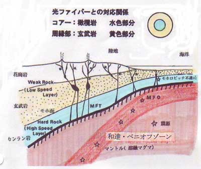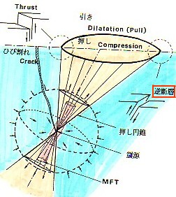 回答3 ![]() ・ 円錐の軸が緩い角度で地表と交差する場合:押し引き分布は楕円型から双曲線型へと変化します。円錐軸が水平の場合には、震央を中心にした点対象の双曲線型となります。この場合、爆発は水平の方向ですので、震動による被害は直下型のように大きなものにはなりません。しかし、沈下現象が起こりますので、大規模爆発ですと、瓜生島が沈没してしまったような悲劇が起こる可能性があります。高知湾でも白鳳年間に大陥没が起こったということです。 ![]() ・ 震源が浅くて、円錐の軸が水平の場合:地上での押し引き分布は四象限型となり、断層は右ずれと左ずれの水平断層が直交して出現します。 ![]() モーメントテンソルによる解析・・・によってほとんどの地震はダブルカップリングで説明が出来る、ということですが、ダブルカップリングとなる偶力が震源で何故発生するのかについては合理的解釈が存在しません。しかし、爆発と爆縮というシンプルな機構(押し円錐機構)によって震源でダブルカップリングに相当する関係が起こっていることが説明可能です。 「科学と単純性 石本巳四雄「科学への道」より 「科學者の中には事更に複雑なる自然現象を解析して、より深く進み得たと得々たるものも居るが、科學の進展に対しては果して如何なる寄輿をなしたかは疑問である。白然研究は簡箪なるものを以て行ふべきものが、自己の手腕を人々に見せんが爲めに、事更に難解なる考察方法を採るものもある。科學の進歩は決して事の難易にて定まるものでは無い。同じく説明出来るならば、単純化せるものを採用するのが科學の根本原理である。以上は要するに人々の思想間題であつて、如何に自然を見、如何に白然を研究すべきか、心の中に書かれたるものの当否に帰着されるものである。自然研究に携わる人々の才能を越えてもその背後にある思想が適当でなければ、如何に研究に没頭しても無駄の結果を齎すのである。」 |