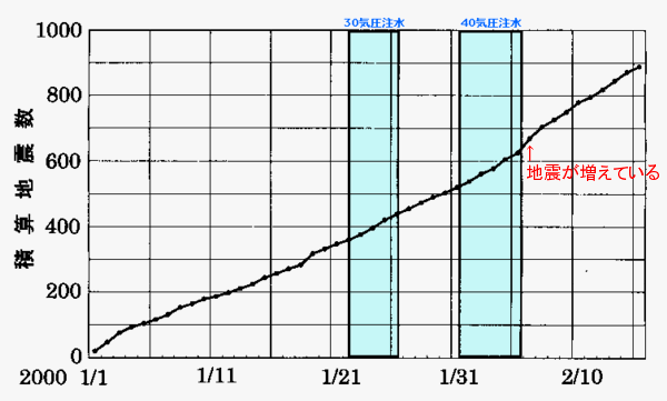 ニュートン編集長としても活躍された竹内均先生は、(先生が地球科学への関心を社会に醸成された偉大な功績を残されたことは大いに認める一人ですが・・)デンバーの廃液注入に関して、その著作(「地球は半熟のゆで卵」)の中で次のように書いておられます。 ------------------------------------------------------------------------ そういうことをやってのける実行可能な方法が、すでに一つ見つかっている。その方法は偶然に見つかった。1962年にアメリカのコロラド州にあるデンバーという町で、原子力発電所からの廃棄物を処理するために、それを水に薄めて地下に注入した。突然小さい地震が数多くおこり始めた。注入をとめると地震がとまり、再び水を注入すると再び小さい地震が数多くおこった。 こういったことを数回くり返した後で、放射性廃棄物を地下へ注入するプロジェクトは中止された。しかしこの大がかりな実験によって、地下へ水を注入することで、小さい地震を数多くおこせることが発見されたのである。 この方法でたとえば大正12年の関東大地震くらいの大きさの地震のエネルギーを小出しにしようとすると、関東大地震よりももっと迷惑なことがおこりかねない。 したがってこの方法は理論的には実行可能であるが、実際的にはその実行は不可能である。 |