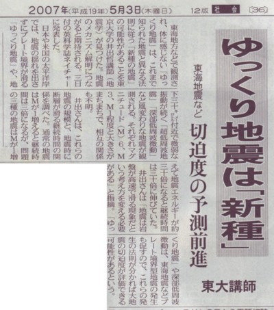 | 1267 2007-07-16 (Mon) 先ほどの地震について(1) 本日10時13分頃、新潟県出雲崎町沖付近を震源とするM6.8の地震が起きました。死者もでているようですが、大きな災害になるのではないかと心配です。