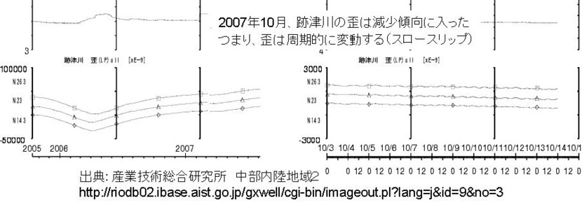 | 1335 2007-12-10 (Mon) 静岡県西部の地震について 山本氏がご心配されている「静岡県西部」で多発している地震について紹介します。 先月(11月)19日から今月(12月)6日の18日間に14回の地震がほぼ同じ場所で起こっています。 @12/06 22:20(北緯34度53分 , 東経137度58分)震度1 M2.7 深さ16km A12/04 11:47(北緯34度53分 , 東経137度59分)震度1 M2.7 深さ17km B12/03 17:06(北緯34度53分 , 東経137度58分)震度1 M3.1 深さ17km C12/03 16:16(北緯34度53分 , 東経137度58分)震度2 M3.2 深さ17km D12/02 06:40(北緯34度53分 , 東経137度58分)震度2 M3.6 深さ16km E12/02 05:51(北緯34度53分 , 東経137度58分)震度1 M2.7 深さ16km F12/02 03:50(北緯34度53分 , 東経137度58分)震度1 M2.6 深さ16km G12/02 02:04(北緯34度53分 , 東経137度58分)震度1 M2.6 深さ17km H12/01 23:37(北緯34度53分 , 東経137度58分)震度2 M3.5 深さ16km I11/29 19:07(北緯34度53分 , 東経137度58分)震度1 M2.6 深さ16km J11/29 01:01(北緯35度08分 , 東経137度58分)震度1 M3.2 深さ39km K11/26 15:55(北緯34度53分 , 東経137度58分)震度1 M3.0 深さ16km L11/19 08:21(北緯34度53分 , 東経137度58分)震度2 M3.2 深さ16km M11/19 05:46(北緯34度53分 , 東経137度58分)震度1 M2.8 深さ16km このうち@、D、E、F、H、I、K、L、Mに関しては震源がまったく同じであり、B、C、Gに関しては深さが1km違うだけであります。 山本氏は太田川ダムの工事によって切り替わった水路の影響であると考えておられます。 近辺には2001年に竣工した長島ダムがあり、満水した同年4月にM5.1の地震がダム近くで発生しています。太田川ダムの下流約10kmの位置には「微小地震の巣」もありますので、ダムが満水した時には大きな地震が起こるのではないかという心配がありますが、湛水が始まっていないにもかかわらず地震が起こってしまったわけです。 ![]() (「仮説:巨大地震は水素核融合で起きる!」より) 山本氏が心配される大地震発生の危険性は十分に考えられるところですが、同一場所で地震が9回も起こる理由としては、変化した水流が「金属と接触して原子水素を発生させる」という山本仮説では([1334]でも述べたように)説明できないのではないかという疑問があります。 「不安定になった解離層が安定するまで地震が繰り返される」と考える方が説得力があると思います。ダム建設後の水圧の影響に関しては、解離層が安定すれば地震は起こらなくなるので、急激に湛水したり、水位の激しい変化を起こさないような運用が大切になると考えています。 |