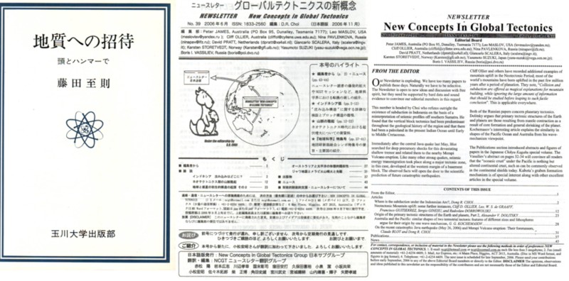 | 1383 2008-04-12 (Sat) グローバルテクトニクスの新概念 亡くなられた藤田至則先生が「地質への招待」の中で、 『数ある普及書の中には、プレート説が仮説でなくて既定の事実であり、これを信じないものは科学者ではないといったことまで述べたものが知られている。』 と嘆いておられることをセミナー[684]で紹介しましたが、その後に次のような文章が続きます。(地質への招待:[686][687]) 『このことは、どうやら教科書だけの問題ではないらしい。数年前に、地質家と地球物理家が一堂に会して、シンポジウムを行なったときのことである。プレート説に対して批判を含めた発表をしたところ、その直後、ある地質学教室所属の地球物理家の一人が、私の友人に、私を名指して「彼は本気でプレート説を疑っているのだろうか。何か希少価値をねらって、わざと、プレート説に反論しているのではなかろうか」ともらしたというのである。この人は、プレート説が仮説ではなくて事実であると、真底から信じているらしい。彼にとって、プレート説を批判することは、事実を否定することになるので、当然、何か、他意があると疑いたくなったのであろう。 このことは、彼が属している地球物理関係の分野では、プレート説が主流となっていて、それに疑いをもつ人が少いということを裏がきしている。事実、いろいろとこの方面の人たちとつき合ってみると、この仮説が動かない事実であると考えている向きが多いようである。』 以上がプレート論に否定的な立場だった藤田先生の感想ですが、先生も応援しておられたNCGT(New Cocepts in Global Tectonics)と云う組織が発行している【グローバルテクトニクスの新概念】というニュースレター(No.38)には、「プレート説の偶像を確実に見破っている」「皆の目前でプレート説が崩壊していくのを目の当たりにしています。」と言う冊子編集者からの報告があります。以下に抜粋して紹介します。 なお、NCGTというグループは「プレートテクトニクスに批判的で、それに替わる学説を探求したいと考えている地球科学者の非公式な組織である。」ということです。 ![]() 『最近、たいへん良い知らせが私たちにどっと押し寄せています。まず、多額の財政的な寄付(2000ユーロ)が、イタリアのローマにある国立地球物理学・火山学研究所(lnstituto Nazionale di Geofisica e vulcanologia、INGV)からごく最近寄せられました。私たちは、所長のEnzo Boschi教授とINGVのScalera博士に、私たちのグループとその活動に対する大きな励ましと深い信頼関係に対して、私たちの心からの感謝の念を申し上げたいと思います。(中略) 私たちの出版(物)は、プレート論者らの長年にわたる一貫した無視にもかかわらず、プレート説の偶像を確実に見破っています。このニュースレターの編集者には、プレート説の支持者からさえ、彼らがプレート説と現実の世界が両立しえないことを悟り始めたという多くの声がよせられています。私たちは、私たち皆の目前でプレート説が崩壊していくのを目の当たりにしています。私たちのニュースレターや他の出版物、特に、第32回IGCの報告集は、疑いなく、世界の地球科学界に衝撃を与えました。 すべての読者は、Journal of Scientific Explolation の最新号 ( 本号のp.26-31に再録)に掲載された、この10年間におよぶ私たちの活動と業績を詳述した、David Pratt氏の論文をぜひとも読んでいただきたいと思います。(中略) (本号には)2004年のインドネシア地震に関する編集委員による1編−が掲載されています。2004−2005年にスマトラ沖で起こった地震の時空分布が、ブロック運動を示していることに注目しています。地震の分布パターンは、シミュエリュ島の北部では、2つのブロック間に大きく深い構造帯が存在することを暗示しています。この構造帯は、惨害をもたらした地震とそれにともなう津波の原因として、すでにBlot氏とChoi氏によって特定されたものです。(後略)』 なお、スマトラ沖地震に関してはニュースレター(No.39)に「インドネシア弧の下のどこにサブダクションがあるのか?」と云う論文があり、その紹介が次のようになされています。 『 私たちのニュースレターは爆発的に広がっています。私たちは今日、多すぎて発行が追いつかないほど多くの原稿を持っています。当然のことですが、私たちはえり抜かねばなりません。このニュースレターは、新しいアイデアや自由な精神のもとに行われる討論に開かれた場になっています。(中略) 本号の冒頭には、Choi氏による、南部スマトラ沖の地震探査断面図の再解釈に基づいて、インドネシアにおける;サブダクションの存在を徹底的に論破している論文が収められています。彼は、垂直ブロック運動がこの地域の地史を通じて優勢であったことと、現在のインド洋には前期一中期白亜紀に至るまでずっと古陸があったということを発見しました。 昨年5月のジャワ中部地震の直後に、Blot氏は、この被害をもたらした浅発地震に対応する先駆的な深発地