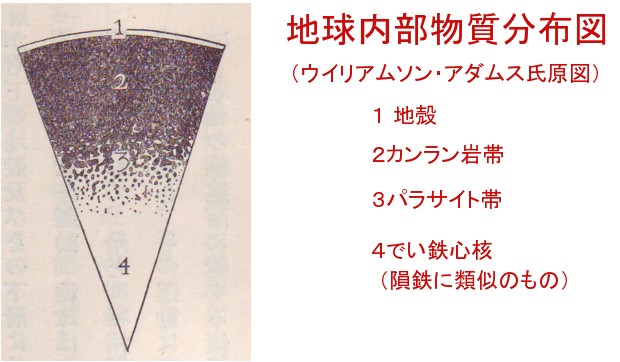 | 1373 2008-03-07 (Fri) 小川琢治博士のマグマ観 [1371]では海嶺部と海溝部でマグマが発生する理屈を、定説論ではどのように説明するのかを見てきました。定説では二つの場所以外では地下深部にマグマは存在しない事になります 。 大陸でも海底でもプレート境界以外ではマグマは存在しないことになります。 しかし、地殻の下に熔融した部分がないとすれば、[1356]で示す@〜Bのような地震波形の違いを説明することができません。 ところで、マグマ貫入が地震の原因であろうと最初に提起した小川琢治博士はマグマの発生をどのように考えておられたのでしょうか。「地質現象の新解釈」から学んでみます。 ――――――――――――――――――――――――― 「内部に行はれる圧力は如何といふに、上層の厚さに応じ、深さを増すに従ひ増加するもので、物質の鎔融する温度は圧力と共に高まるから、温度の増加と圧力の増加を比べて考ふれば、内部は高温ではあるが固体の状態を維持し得るのである。ケルヴィンの地球の剛性をガラス又は鋼に等しいとした計算は之を燈明していると考へられる。 此の如く一般に剛固なる内部から表面に変動を起す方法は先づ急激に冷却する為めに上層が下層よりも体積の減少が大きく、その結果上層に割裂を生じ、次に此の空隙の成生に因る局部の圧力の急減は高温なるも高圧の為に固体を成す物質の液化及び気化を促して之を充填し、列罅(ひび)の部分に岩漿となって溜る。 此の弾性の大なる物質は下層の圧力を上層に伝えるから、水圧的に働いて順次上層を割裂し、熱と圧力とを上層へ伝える所の岩漿の上昇運動となるのである。」序説より ――――――――――――――――――――――――― 以上が序文にあるものですが、基本的には[1371]の図1と同じマントル固体説です。 固体が熔融する理屈ですが、地球の収縮は表面の方が激しいから、表面にひび割れが発生し、ひびの先端では圧力が減少して高熱のマントル物質が熔融する、これがマグマであるということです。 ひび割れが達していない部分にはマグマは存在しない事になります。そしてひび割れは地下30〜40キロ付近まで達しその付近からマグマが上昇するとされています。600キロを超えるような深部での地震は説明が困難になります。 博士の時代でも、高温・高圧状態では固体であるという説以外は存在しなかったようです。 水が存在すれば「劇的に融点が下がる」 と云う情報があったなら、考えは変ったのではないでしょうか。 地球内部の物質に関しては以下のような考察があります。 ![]() ――――――――――――――――――――――――― 「地球の物質は全体として水に比して約五・五倍の密度を有し、表面で出逢ふ岩石(花崗岩の比重2.7)に比し二倍強である。故に内部は遙かに密度の大なる物質から成ると考へねばならね。天体の破片たる隕石物質から考へて隕鉄(比重8〜10)に類似する物質が心核を成し、之と石質隕石との混合体(比重6内外)の如きものが中間に在って、その上が石質隕石(比重4内外)(図の説明が正しいのなら、ここはカンラン岩帯の誤植か?)の如き表層を成し、更に最外部に花岡岩から玄武岩に至る間の岩石(比重2.8〜3.2)の物質が在ると考へられる。(p.548より)」 ――――――――――――――――――――――――― 図中2のカンラン岩帯とされる中で固体として存在する部分までを真の地殻とし、その下に熔融したカンラン外が存在すると考えれば石田理論と矛盾しないものだと思います。 4の心核や3のパラサイト帯まで熔融しているのかどうかは判断する知識が在りません。 また、固体であっても、液体であっても[1371]で述べた地震後の長周期震動、地球磁場の発生には影響しないはずです。 2の橄欖岩が全て固体であるというのが定説であり、博士も採用されている考えですが、それはこのセミナーでこれまで述べてきた地震波の電波経路の考察などの知見から言って違うと結論されます。 追記: [1151]に紹介した東工大グループの研究では地下660〜2900kmの下部マントルの中に海水の5倍の水が含まれているとされています。つまり、そこでは「融点が下がり」熔融している可能性があります。 ただ400kmより浅い上部のマントルは水を含んでいない岩石であることが分かっている・・・とあって、上部マントルが固体であると予測させていますが、それでは、[1356]の@〜Bの地震波形の違いを説明できないので、矛盾が生じます。 【セ氏1600度、25万気圧の高温・高圧環境をつくり出せる装置を使って、下部マントルと同じ結晶構造を持つ3種類の鉱物を人工的に合成することに成功。その鉱物の水分量を特殊な分析計で測った。】 と云う実験方法が妥当なものなのかどうか、400kmより浅い部分の岩石が本当に分かっているのかどうか、については私にはよく分かりません。 なお、東工大グループの見解には、 【隕石は質量の2%の水分を含んでいるのに、現在地表にある水を合わせても地球の質量の0・02%
