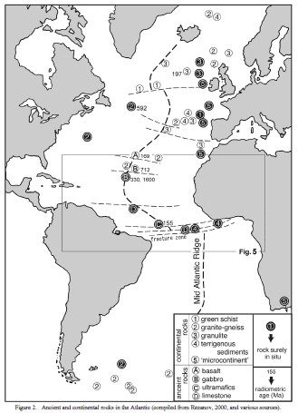 | 1386 2008-04-16 (Wed) プレート論は完全に破綻している プレート論に矛盾があることはこのセミナーで何回も述べてきましたが、NCGTの論文によれば完全に破綻していることがわかります。このような理論をどうして教科書でまで教えるのか([684])、まことに不思議な思いがいたします。 既に、セミナー[687]で「大西洋の海嶺から、三十億年前の岩石が見つかっている」という話を紹介しましたし、[1094]では「火山から噴出し大気中でゆっくり冷えた場合にのみ生成されるタヒライトと云うガラス質の鉱物が大西洋の海底に存在する」という話を紹介しました。こうした海底から採取されるものは、氷山が運んできたものだとか、鉱石運搬タンカーからこぼれ落ちたものだとかの「ご都合主義」解説でプレート論は生き延びてきたようです。しかし、紹介するNCGTの論文によれば、海底下をボーリングして得られるサンプルからも、その海底が大陸性のものであることが判明しているということで、完全にプレート論は破綻しています。 プレート論では、海洋性のプレートは玄武岩や橄欖岩などの重い岩石で構成されているが、一方の大陸性のプレートは花崗岩、片麻岩(シアル質)などの軽い岩石で構成されていて、重い海洋性のプレートが軽い大陸性プレートの下に潜り込んでいることになっています。海洋性プレートは海嶺で誕生し、海溝部で大陸プレート下に消えていくので、最高年齢の岩盤でも2億年であり、それ以上高齢の古期岩石は存在しない事になっています。 しかし、紹介する論文では大西洋にもインド洋にも、また太平洋にも花崗岩が存在し、2億年を超える長寿岩盤が存在するということです。【大洋底でみつかる大陸性岩石と古期岩石】と云う論文からほんの一部を抜粋して紹介します。詳細はNCGTサイトのissuesからNo.43をご覧になってください。日本語版はこちら。 ーーーーーーーーーーーーーーーーーーーーーーーーーーーーーーーー 大洋底でみつかる大陸性岩石と古期岩石 B.I Vasiliev 矢野孝雄 大西洋 大西洋は、パンゲアの西部が東西に分裂してできたという。ところが、実際には、40あまりの地点で大陸性岩石や古期岩石が発見されている(図2)。 ![]() 図2 大西洋における古期・大陸性岩石 これらの岩石の一部は、氷山によって運搬された可能性や、船舶バラストの可能性をもつ。しかし、図2に示された17地点では、海底掘削や海底岩盤のドレッジによって得られた大陸性岩石を産し、それらは、疑いもなく、その場に存在する現地性岩石である。 (1)北部北大西洋 北大西洋の北部には、ところどころに、大陸性岩石が存在する。(図3) ![]() 図3 世界地質図の北大西洋域 J:ヤンマイエン海域、V:ボーリング海台、R:ロッコール海台 ヨーロッパ側のR:ロッコール海台(先カンブリア系[紅色])、V:ボーリング海台(新生代層[黄色]におおわれた中〜古生界)、および、その南方の上部白亜系[黄緑色]のほか、大西洋の中軸部にJ:ヤンマイエン海嶺の中〜古生界[緑色―緑褐色]。 ヤンマイエン海嶺は、幅100〜150km、長さ500kmほどの断層地塊である。海嶺表面は、遠洋性堆積物におおわれている。表層の遠洋性堆積物の下には、東へ傾斜した堆積層が存在し、より深部の地震波速度構造とも調和的である。遠洋性堆積物基底の傾斜不整合は陸上浸食によって形成されたものであり、不整合の直下では後期始新世〜前期漸新世の陸源砕屑岩(砂質泥岩・砂岩)が掘削された。それゆえに、下位の厚い堆積層は中生界〜古生界であると推論されている。 海嶺の構造探査結果によると、この海嶺は大陸性である。(後略) (2)赤道大西洋 赤道大西洋には、多くの大規模な断裂帯が存在するため、中央海嶺が不連続になり、海底地形も複雑になる。そこには、次のような現地性の古期岩石や大陸性岩石が分布する。 (1)古い年代のジルコンを含むはんれい岩 ケイン断裂帯の南方5〜35kmでは、中央海嶺中軸谷の面壁に、かんらん岩やはんれい岩が露出する。深海掘削によってえられたはんれい岩には、多数のジルコン結晶が含まれていた。Pilot et al.(1998)は、3つの年代測定法にもとづいて、これらのジルコンから2グループの生成年代をえた。3.3億年前(古生代)および16億年前(原生代)。(後略) 中央海嶺で発見された古い年代の岩石を説明するために、プレートテクトニクス論者は、「小規模扁平対流」や「非標流域」という新しい概念を導入せざるをえなかった。しかし、すべてが新生し、移動しつづける造構環境の中で、そのような停滞あるいは非拡大をいかなるメカニズムがうみだすのか、また、玄武岩よりも融点が低い大陸の破片が長期間にわたって融け残ったのか、いずれも、よくわかっていない。 (2)古期石灰岩 ヴェマ断裂帯の南側には、断裂帯に沿う線状隆起帯(幅20km、長さ400km以上)が存在し、ヴェマ横断海嶺とよばれる。この海嶺は白亜紀〜前期暁新世の遠洋性石灰岩に覆われていて、予測される海洋底年代(中新世)に比べて三千万年以上も古い。 海嶺の水