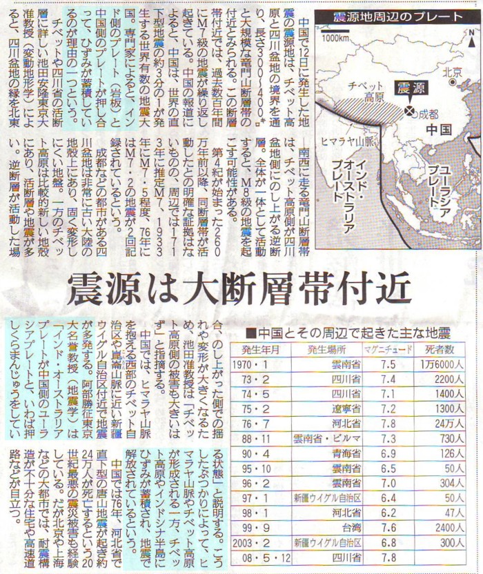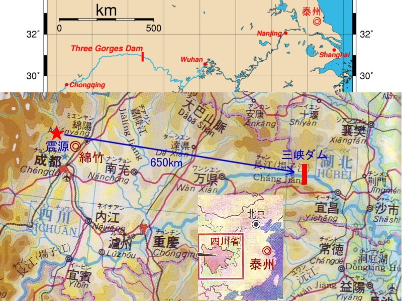 | 1401 2008-05-15 (Thu) 地震によるダムの破壊 今回の大地震では都江堰上流地域の紫坪埔ダムが破壊され、決壊を防ぐために放流しているというニュースを中央日報が報じています。 ーーーーーーーーーーーーーーーーーーーーーーーーーーーーーーーーーーーー 中国大地震>四川省一帯のダムに亀裂・・・“2次災害”の恐れ 中国四川省で起きた大地震の余波で周辺ダムに亀裂が生じ、2次災害の可能性が心配されている。四川省も成都近隣の都江堰上流地域の紫坪埔ダムに14日、危険な亀裂が発生し、軍から2000人が緊急に派遣されたと、中国国営新華通信が報じた。 水道行政を総括する水利部は、紫坪埔ダムに大きな問題が発生した場合、都江堰市全体が浸水する、と警告した。当局はこのような2次災難を防ぐために緊急指揮センターを設置し、紫坪埔ダムから下流に流す水の量を普段より50%増やし、水位を下げている。 これに関連し、中国国務院傘下・マクロ政策担当部処の国家開発改革委員会はこの日、ホームページに今回の地震で391カ所のダムが破損したと、明らかにした。このうち2基は大型ダム、28基は中型ダム、残りは小型ダムという。水利部はダムをはじめ、水道施設の緊急補修のために周辺地域に技術者を派遣した。(後略) ーーーーーーーーーーーーーーーーーーーーーーーーーーーーーーーーーーーー 大型ダムが2基存在するということですが、今回の地震はダムの建設が地震を誘発した可能性を完全には否定できないという見解もあります。また、評論家の宮崎正弘氏は人的被害が大きいのは手抜き工事による人災であると述べると共に、心配されてきた「三峡ダムの決壊」が現実味を帯びてきたと心配しておられます。そのサイト「宮崎正弘の国際ニュース・早読み」から紹介します。 --------------------------------------------------- 平成20年(2008年)5月13日(火曜日) 参 四川省大地震は人災ではないのか? 犠牲が多いのは手抜き工事 次はいよいよ「三峡ダム決壊」のシミュレーションに現実味が急拡大している 最悪の事態へ向けて微動が始まった。 三峡ダムの貯水が始まって、すでに記録されただけで地震は200回を越えている。貯水池は重慶から上流の広い流域。 昨日、大地震に襲われた四川省成都、都江堰、北川県などを含む。 貯水が155メートルに達した(ダムは185メートル)。 水没した上流域で過去2年間に何が起きたか? 地層の緩い箇所は土砂崩れ、崖崩れ、陥没。 また地層には地表から見えなかった洞窟や鍾乳洞や、ぽっかりと穴が空いた場所があり、ここに貯水水が流れ込み、土砂崩れ、地盤の崩落を誘発した。 付近の住民が体感しただけでも200回を越える地震があった(拙著『崩壊する中国 逃げ遅れる日本』(KKベストセラーズ。24p−27pを参照)。 今度の事態は早くから予測されていた。率直に言って、人災である。 犠牲の数が多いのは学校や工場の倒壊が原因だが、多くの建物は日本のような耐震構造ではなく、もともと建築基準法さえ守っていない、大胆な手抜き工事によるものであろう。 成都には四回ほど行ったことがある。イトウヨーカドウは三店舗、すぐに閉店したそうである。 都江堰は、古代中国の灌漑設備が残る観光の名所でもあり、さらに北へ行くと日本の農耕文明に酷似した太陽信仰の「三星堆遺跡」が広がる。嗚呼、あのあたりも地震の被害に襲われたのだろう。 眉山も、もっと北東部の九寨溝にも被害が及び、また三峡ダムの立ち退きで流民の流れ込んだ重慶市にも被害が及んでいる。 --------------------------------------------------- 三峡ダムは今回の震源から約650kmも離れていますから、このダムの建設が直接影響したという可能性は少ないと思いますが、「三峡ダムの貯水が始まって、すでに記録されただけで地震は200回を越えている。」という現実は怖いものがあります。 ウイキペディアの三峡ダムという項目には「地震の可能性」と題して、次のような解説があり、貯水する水の重量に岩盤や地質が耐え切れず、ダム破壊に繋がるという認識のようです。これが地震関係者の認識でもあるのだろうと思います。 ーーーーーーーーーーーーーーーーーーーーーー 地震の可能性 2006年8月、香港の中国人権情報センターは三年以内に三峡ダムが強い地震を引き起こす可能性があると発表した。また中国国務院の温家宝総理もこの件について憂慮しているとも添えられている。同発表によると、当局は1993年より同ダム近辺についての地質調査を行っているが、その結果および重要な地質資料が極秘となっている為に、外部機関が精査することが出来ないとしている。 蓄積された水の重さにダム付近の岩盤や地質が耐え切れずに「地震」を引き起こすのでは無いかという懸念が寄せられているのも事実である。仮に何らかの理由でダムが決壊した場合、その流域に未曾有の大惨事をもたらすことは必至である ーーーーーーーーーーーーーーーーーーーーーー しかし、本当に怖いのは、貯留される水の水圧によ