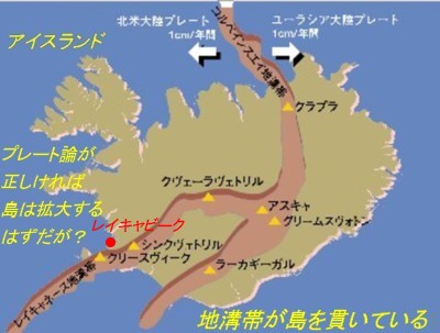 | 1422 2008-06-05 (Thu) 続々・「騙された学者たち」より学ぶ 第三章「地底の妖怪」にはギャオの話が書いてあります。ギャオとは地溝帯のことでアイスランドでの呼び方です。地下からマグマが出てきて冷えて固まり、新しいプレートが誕生する場所つまり海嶺が地上に出ている場所というのが定説の解釈なのですが、私は[1354]で述べたようにかつて海底にあった地殻の亀裂や海嶺部分が巨大地震を伴う変動で浮上したもので、言ってみれば“海嶺の化石”のようなものと考えています。 ![]() http://www.iceland-kankobunka.jp/gnrl/info/outline/geology.htmより ![]()