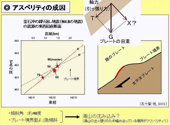 | 1448 2008-07-02(Wed) 東北大学地震・噴火予知研究観測センター長への質問 東北大学100周年記念セミナーに於いて、「ここまで来た地震予知研究」という講演をなされた長谷川昭教授(東北大学理学研究科附属地震・噴火予知研究観測センター長)にご質問します。 講演内容の前半はすでに(6年前)、[222]アスペリティー(固着域)モデルの矛盾で紹介した内容と同じですので、私の考えはセミナー[689]の最後で述べたように、 「剛体であるというプレートのある部分は自由に滑り、ある部分は固着して滑らないということが起こり得るとは思われません。そんな挙動は剛体にはあり得ません。一枚の板で動く部分と動かない部分があるなんてことは、どう考えても矛盾です。」 となることを、お伝えし、以下に質問をさせていただきます。このサイトをご覧になっておられましたら、ご教示いただければありがたく思います。なお、先生とは面識がありませんので、どなたか仲介していただければありがたく思います。 ![]() http://www.istu.jp/kougi/hasegawa_2005_05/hasegawa.htmlより 質問1:プレートが移動する原動力はその下にあるマントルが対流しているから、その流れに乗って移動しているという解釈のようですが、マントルの粘性摩擦によって引っ張られることは無いというのが結論ではないでしょうか。現在ではプレートが冷却して、密度を増すために自重によって地球内部に沈んでいくという考え方が採用されていると思いますが・・・。 質問2:;太平洋プレートの上面にパッチ状に存在するアスペリティー領域は、その上に存在する大陸側プレートの下部と固着していて、普段は滑らない、しかし一方の安定すべり域はズルズルと自由に滑るという解釈です。この場合、アスペリティー領域と安定すべり領域の境界はどうなるのでしょうか。亀裂が入るのでしょうか? 自重によって沈んでいくという太平洋プレートがなぜ大陸プレートとこのようにしっかりと固着するのか、固着させる原因は何なのでしょうか? 質問3:アスペリティ−が存在せず、ズルズルと自由に滑っている地域が世界にはあるということですが、その場所はどこなのでしょうか。 質問4:すべり量のコンター表示がありますが、中心が一番多くすべり、周囲はすべりが少ない表示になっています。すべりの進行方向に向かって考えると、コンター中心点は前方のすべり量が少ない部分がすべりを妨害することになりませんか?また後方部分には、亀裂ができるのでしょうか?両サイドはどのようになるのでしょうか? 質問5:安定すべり域は地震時に、バリアーの働きをするとあります。普段からズルズルと自由に滑っている部分なら、留め金が外れるわけですから、プレートが一体となって滑るように思いますが、なぜすべりを妨害するのでしょうか。 ![]() http://www.istu.jp/kougi/hasegawa_2005_05/hasegawa.htmlより 質問6:深発地震面として知られる和達・ベニオフゾーンのことを、通説ではプレートの潜り込みと解釈しているわけですが、プレートが自重で潜り込んでいるのなら、28度という傾斜角度でなぜ沈降するのでしょうか。マリアナ海溝付近では垂直に潜り込む([1123]の図参照)ことになりますが、なぜ場所によって沈降する角度が違うのでしょうか。図中の分力Xはマリアナ海溝ではゼロになります。 質問7:自重Gのプレート方向分力Tは引っ張り軸力になりますが、岩石は引っ張りに関しては大変弱く、固着している部分があるとすれば、その下部で引っ張り力により破断すると思われます。材料力学的には岩盤の特性が誤って解釈されているように思いますが、なぜ岩盤にそのような耐力があるのでしょうか。 質問8:応力集中→応力限界→地震の発生と解説されていますが、応力の限界に達するとは部材が破断するという意味ですが、破断すれば歪は消滅します。歪の消滅現象が地震ならば、弾性反撥地震説には相当しません。破断地震説と弾性反撥説とは[1256]、[1393]などに示したように矛盾した考え方だと思うのですが、ご説明いただけますでしょうか。 |