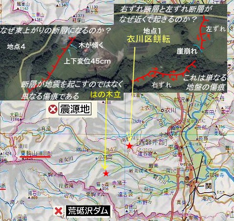 | 1436 2008-06-22 (Sun) 断層調査は傷痕調査である 産総研活断層センターが行った現地調査によると、地震を起こした断層が見つかったかのような報告になっています。しかし、[1433]にも書いたように、このような小さな規模の断層が荒砥沢ダム上流の大崩壊を引き起こすような地変の原因になるとは思えません。 報告にある断層というのは、地震爆発論の立場では単なる爆発によって生じた地皮の傷痕に過ぎないということになりますが、その根拠を二つの例から述べてみます。 ![]() 産業技術総合研究所調査報告より加工させていただきました http://unit.aist.go.jp/actfault/katsudo/jishin/iwate_miyagi/report/080619/index.html ★ :ひとつは衣川地区餅転における左ずれ断層と右ずれ断層です。震央から15kmも離れた場所で、右ずれと左ずれが現れるのは地震断層説から考えるとおかしいことになります。 しかも断層が直交する形で現れるのは、断層理論からいえば、ごく浅い地震で震源の直上に出現する四象限型;の場合だけです。震源から15kmも離れた場所でこのようなずれ方を示すのは地震断層ではないことを意味しています。つまり単なる爆発によって生じた地皮の傷を意味しています。 ★ :二つ目は枛木(はのき)立北方に現れた断層です。西側地盤が東側地盤に乗り上げる形の逆断層が生じたことになっているのですから、東側が隆起するのは断層理論に矛盾することになります。これも、爆発によって生じた単なる地盤の傷であると考えられます。 とにかく、単なる地盤の食い違いを地震断層と見做して、断層理論を展開しても、何も地震の真相は見えてこないと思います。断層の調査というのは爆発の傷痕調査であると考えるべきです。 断層は地震の結果起きる地盤の傷で、自由端部の地表にでき易く、地下深部にはできにくいものであります。 |