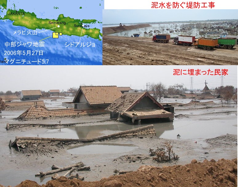 | 1446 2008-06-30(Mon) インドネシアの泥火山被害 インド洋大津波を伴った2004年12月のスマトラ沖地震以来インドネシアでは大きな地震が連続しています。2006年の中部ジャワ地震でも大きな被害が出ましたが、その後遺症とも思える泥火山の活動による被害は日本ではあまり報道されておりません。 中部ジャワ地震の2日後にガス採掘泉の200メートル脇に泥噴出口が出現し、6日後の6月2日にはゴロゴロという爆発音とともに5メートルもの泥水が噴出し、村中が大混乱になったそうです。 以来2年以上経ちますが、依然として泥水の噴出は収まらず、多くの村が泥の下に埋まってしまいました。 ■2006年5月27日 マグニチュード5.7の中部ジャワ地震が発生(震源はシドアルジョの南西250キロ) ■2006年5月29日 シドアルジョ県ポロン郡シリン村のラピンド社ガス採掘井、200メートル脇に泥噴出口が出現 この事件を報道する大紀元の記事を紹介します。 ――――――――――――――――――――――――――――――――――― http://jp.epochtimes.com/jp/2008/05/html/d50509.html ![]() 泥水を噴出している火山『ルシ』。噴射中心は深さ30mの大きな穴で、硫黄臭と白煙がもうもうと立ち、空を覆う。 大紀元日本記事より 噴出開始から二年、地球にできた大きな傷口=インドネシア ________________________________________ 【大紀元日本5月30日】インドネシア東ジャワ島ポロン郡の火山が2年前、突然高温の泥水を噴出し始め、今も止まることがない。これにより、十数ヶ所の村が浸水し、損失は37億米ドルを超える。科学者は、もし泥水を封じ込める有効な手段が見つからなければ地球に大きな傷口を作ってしまうだろうと予測しているという。 インドネシアのメディアによると、2006年6月2日早朝、アハメッド・ムタジールさんは家の前でバイクを修理していた。8時を回った頃、地面の下からゴロゴロという唸り声を感じた。ムタジールさんは「あれが爆発だった。泥水が噴き出し始めた。5mに届くほどだった」と当時を語る。 次の瞬間、みなが逃げまどい、村中が大混乱となった。ムタジールさんも母親と2人の兄弟と共に何も持たずに家を離れた。その時はすぐに戻れると思っていたからだ。 しかし2年が経ち、彼の村およびポロン地区の大部分が泥水に呑み込まれ、無くなってしまった。この2年来、火山は約1億立方メートルの泥水を噴き出し12の村が埋没、1万6000人が家を失い、数十人が命を落とした。 これまでに泥水は毎日およそ15万立方メートルを噴き出し続け、その量はプール50杯分にもなるという。噴火口に通じる狭い道路には数十台のトラックが噴出した泥水を運ぶために1列に並んで待っている。運ばれた250万立方メートルの泥は、周辺地区で建造している13kmの堰に利用されている。 現地の人々はこの泥水を噴出している火山を『ルシ』と呼んでいる。噴射中心は深さ30mの大きな穴で、硫黄臭と白煙がもうもうと立ち、空を覆っている。 国際通貨基金は、ルシ火山がインドネシアに与えた経済損失は37億米ドルで、状況はさらに悪化するものと見ている。科学者は、もしこの泥水を封じ込める事が出来なければ現地の地層は沈み、最終的には地球の大きな傷口を残すだろうと予測している。 ![]() これは昨年撮影されたインドネシアの航空写真。泥火山(マッド・ボルケーノ)はすでに600ヘクタールを覆い尽くしている。東ジャワ州ポロン郡の多くの家が泥水に埋没し、1万6000人がこの地区を離れている(AFP) 大紀元日本記事より ―――――――――――――――――――――――――――――――――――――――――――― 以上が報道記事の内容ですが、被害は予想以上に酷いようです。中部ジャワ地震のあとも、メラピ山が噴火しておりますし、この一帯の地震活動はまだまだ警戒を要します。 ![]() ウィキペディア;、JanJan Newsより しかし、これだけ、火山活動と地震との関連を推定させる現象が発生しているのに、セミナー[1329]にも書きましたが、相も変わらず、プレートが潜り込んで、歪が蓄積し、それで反発が起こって・・・・という紋切り型の解釈しかできていないのが実情です。 これほどの短期間にインド洋プレートが潜り込んで毎年のように歪を蓄積・開放するなどということがおきる筈はありません。プレートが移動する原動力は海洋底を移動する間に冷却が進み密度が増加すること、つまりプレート自体が自重を増すことによって、沈んでいくというトンデ理論がまことしやかに信じられています。自分の重さで沈んでいくプレートが、お隣りのプレートをどうやって押すことができるのでしょうか。インド亜大陸は今もユーラシアプレートを押していて、ヒマラヤを高くする働きをしていると教えていますが、どうしてそんな力があるのでしょうか、どうしてインド亜大陸プレートは沈んでいかないのでしょうか。海洋プレートは海溝までやってきて冷却されるそうですが、陸上に顔を出している陸プレートはもっと冷却が進むのではないでしょう
