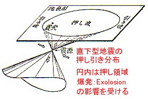| 1431 2008-06-17 (Tue) 地震発振機構見直しの機会 岩手・宮城地震は地震と火山活動が同根であることを推定させる観測事実の報道があります。栗駒山南麓で火山性のガスが噴出しているのが確認されたという記事です。 「爆発現象がごく浅い場所ならば火山爆発となり、深ければ地震となる」というフンボルト以来の地震観に戻る必要があると考えられます。 ーーーーーーーーーーーーーーーーーーーーーーーーーーーーー ![]() http://www.yomiuri.co.jp/science/news/20080616-OYT1T00381.htm ★宮城・栗駒山頂近くで水蒸気、火山性ガスか…県など調査へ 宮城県の災害対策本部は16日、栗駒山頂南西約7キロで、火山性ガスの可能性がある水蒸気の噴出を確認した。 噴出現場は秋田県境に近い栗原市花山で湯浜温泉の近く。16日早朝、車両3台が巻き込まれたとみられる土砂崩れ現場で、自衛隊員が安否不明者の捜索をしている際に見つけた。ヘリコプターで上空から観察したところ、数か所から水蒸気が出ているという。 宮城県や仙台管区気象台などは成分と濃度などを調べるため、現地に職員らを派遣する方針。 東北大学地震・噴火予知研究観測センターの植木貞人准教授は「地震で山の地盤が動き、地下にたまっていた火山性ガスが噴出したり、温泉のもとになる地下水脈の流れが変わって水蒸気が出たりした可能性がある」とし、「現場は栗駒山の山頂付近から相当離れており、火山活動の活発化を意味するものではない」としている。 (2008年6月16日11時50分 読売新聞) http://eonet.jp/news/national/article.html?id=144021 ★大崎市の山あいにガス?水蒸気?=自衛隊ヘリが確認−岩手・宮城地震 (6月16日11:45) 岩手・宮城内陸地震で最も被害の大きい宮城県栗原市に隣接する大崎市の山あいで16日早朝、水蒸気かガスのような白いものが勢いよく立ち上っているのを、自衛隊のヘリコプターが上空から確認した。 陸自東北方面総監部や仙台管区気象台によると、鳴子・鬼首温泉郷東側の地熱発電所もある周辺の一帯。同日朝の県災害対策本部会議で、自衛隊側は「火山ガスが活発化しているのか、ただの水蒸気なのかはっきりしないと、救助活動に影響する。早急に原因を調べてほしい」と県に要請。本部長の村井嘉浩知事は、速やかな対応を約束した。 [時事通信社] ーーーーーーーーーーーーーーーーーーーーーーーーーーーーー 新聞報道を見ていると、今回の地震で建物被害が少なかった原因は、逆断層の上板にあたる西側は山岳地帯であり、東側の市街地は下板に当たるために振動被害が少なかったという学者のコメントがあります。経験論的に述べておられるものと思います。 地震爆発論で解釈すれば逆断層の上板というのは爆発の押し領域に当たり、下板というのは引き領域に当たります。振動被害は圧倒的にExplosionによる押し領域が甚大となります。引き領域はImplosionですから、振動被害よりも地盤の沈降という被害を受けることになります。 今回の地震では震源付近で4000ガルを記録したということですが、これは垂直方向に爆発が生じた正に直下型地震であったことを意味します。震源の深さが8kmでExplosionが鉛直であったとすれば半径8kmほどの円形の外側は引き領域になる可能性があります。 荒砥沢ダム周辺の崩落は引き領域に当たったために生じた大陥没であるという可能性も考えられますが、振動によってドミノ的に崩壊したという解説(テレビ報道)もありました。 どちらにしても爆破による振動が継続的に起こったために発生した地変であり、「断層運動という地変によって地震動が発信した」という解釈は成り立たないと思います。 ましてや、今回は断層が存在しなかったというのが有力なようですから、被災された方にはお気の毒ですが、地震そのものの発振機構を再考するよい機会であると思います。それを願っている建築関係者の声に耳を傾けてみてください。 追記:毎日新聞航空部が荒砥沢ダム付近を撮影した動画がありました。 「 6月16日、毎日新聞社ヘリ「レインボー」から岩手・宮城内陸地震による土砂崩れで地形が大きく変わった宮城県栗原市の荒砥沢(あらとざわ)ダムの北西部を上空から撮影した。 地震発生当初のまま、山肌がえぐられ、広い範囲で巨大な地滑りを起こしたまま、クレーターのように陥没していた。」 という記事があります。現場を見るとクレーターのような陥没という感想になるようです。」 注釈:その後動画はこのサイトでうまく作動しなくなってしまいました。 ![]() 左図に示す直下型地震の引き領域に相当する陥没現象の可能性がありますが、地震計の記録ではどうなっているのでしょうか。 |