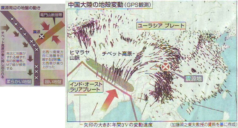 | 1440 2008-06-25(Wed) GPSは膨張性地山の動きを計っているのかも 先日母校の大学の現役を終えた土木科卒業生で作る勉強会に出席し、青函トンネルの工事長を務められたM先輩の話を聞いてきました。工事中に日本海中部地震を体験されたそうですが、当時トンネル内にいた300人には何の怪我もなく、トンネル内部にも何の異常もなかったということです。岩盤の状態が悪いところでは工事中に異常出水するケースもあったという難工事なのですが、あれだけ大きな地震が近くで起こっても炭鉱の落盤のような崩壊は何も起こらなかったそうです。 ということは、炭鉱の坑道やトンネル内部が自由端ではなく周囲から支持・拘束された固定端に相当することが大きな原因だと思います。 また懇親会では別の先輩が7月1日に開通する飛騨トンネルの難工事を例に取り、地盤には方向性を持った大きな圧力が掛かっていること、その力はプレートが押している力だと考えていたが、違うのかね・・という話を持ちかけられました。次回の勉強会は私が講師を務めますので、それまでに、納得の行く説明をしなければいけないなぁ、と経験をつんだ土木技術者の突っ込みに緊張しました。 飛騨トンネルは異常出水と掘削断面が膨張するという膨張性地山に遭遇しての難工事となったものですが、この膨張性地山は蛇紋岩、泥岩、頁岩などで構成される場合が多いようです。地下内部での温度変化、圧力変化、水質変化などに反応して膨張するもので、掘削によってそれらの条件が激変するために急激な膨張を起こし、トンネル壁面の支保工を破壊する原因にもなります。先輩技術者がプレートが押す力と考えてこられた地盤内の複雑な力は、こうした膨張が引き起こす内部応力であると解釈するのが正しいと思います。 こうした膨張性地山が存在するということは、地球表面の移動をGPS観測で精密に捉えても、それが地殻本体の移動量と直接に関係しているのかどうかを疑わせます。 [498]などでも説明してきましたように、GPS観測は堆積層をも含んだ地球表皮の動きを捉えているだけでプレートの動きを表しているのかどうかは疑問であります。 6月16日の産経新聞にはGPS観測による中国大陸の地殻変動が紹介されています。それによると、一枚の剛体であるはずのユーラシアプレートが時計回りに方向転換して南へ動いていく様子が描かれています。地球の表皮の下には膨張性の岩石もあるでしょうから、ほんの表面だけが回転運動をしているかのような動きをしている可能性もあると思います。 剛体であるはずのプレートがアメ板が変形するように動くというのはどう考えても矛盾があるのではないでしょうか。新聞記事の一部を紹介しますが、このセミナーを読んでこられた方には、違和感のある解説だと思います。しかし、通説はこのような解説になるのですから、セミナーの内容と比較しながら読んでみてください。 ヒマラヤ山脈生んだ地殻変動 ■特異な回転運動 竜門山断層帯は、なぜ動いたのか。その謎を解くカギは、中国大陸の形成史にある。ユーラシアプレート(岩板)に乗っている中国は、北上するインド・オーストラリアプレートから常に押され、変形している。インドはかつて島だったが、プレート移動によって約4000万年前に中国に衝突し、陸続きになった。 日本の太平洋側では、陸より重い海洋プレートが列島の下へ沈み込む。しかし、中国とインドはどちらも陸のプレートなので互いに押し合い、境界付近が隆起していく。これがヒマラヤ山脈を生み出した。 ![]() 2008年6月16日産経新聞より 東大地震研の加藤照之教授らによるGPS(衛星利用測位システム)観測の解析によると、インド・オーストラリアプレートは年間3・7cmの速度で中国に衝突している。この影響でチベット高原は圧縮され、東へ押し出される。しかし、四川盆地より東側は非常に固い地殻で覆われているため、四川付近で地盤は押し返され、時計回りに方向転換して南へ動いていく。地殻の巨大な回転運動は世界的にも特異な現象で、一帯は「四川−雲南構造帯」と呼ばれる。南北方向に多数の活断層があり、マグニチュード(M)7超の横ずれ断層型の地震が多発することで知られていた。 竜門山断層帯はこの地域の東端に位置しており、一連の地殻変動が今回の地震の引き金になった。しかし、断層の方向や仕組みは周囲とは別物だ。 加藤教授は「地震学者は横ずれ型の活断層に注目していて、竜門山はノーマークだった。今回の断層変位が6メートルだとすると、1000年〜3000年かけて蓄積されたひずみが解放されたのでは」と話す。 ■″古傷″が再発 池田准教授によると、竜門山断層帯は周辺の活断層と比べて活動度が低く、過去に動いた歴史記録も存在しない。その起源は非常に古く、最も活動的な時期はインド衝突前の恐竜時代までさかのぼるという。 「約2億年前の中生代三畳紀以降、この地域の主要な断層として動いていたが、約6000万年前の白亜紀末以