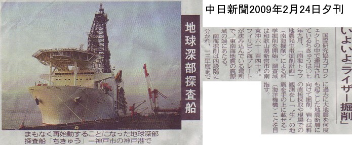 | 1565 2009-03-01 (Sun) 結果が見える調査船「ちきゅう」の作業 中日新聞(2月24日夕刊)に海洋研究開発機構の地球深部探査船「ちきゅう」が再始動するというニュースが載っていました。 ![]() ![]() 「故障した推進装置の修理が二十三日に終わり、五月から紀伊半島沖で巨大地震の発生の仕組みに迫る掘削を再開させる見通しだ。二〇〇七年からの一次調査の成果を踏まえ、ちきゅうによる海洋科学掘削は新たな段階に入る。」とあります。記事の最後には「最終目的の地震メカニズムの解明につなげていきたい。」という平朝彦・地球深部探査センター長の言葉があります。 600億円をかけて建造されたこの調査船の話題は2005年に[1050]で紹介しましたが、当時は「人類がだれも手にしたことのない、海底下七千メートルのマントル到達に挑む。」とか、「マントルは、地殻の下にあって、大規模な火山活動や地震を起こす原動力になっている。直接マントルを調べることで、画期的な発見を狙う。」いう紹介記事にびっくりして、「マントルは熔融していて、その中に含まれる解離ガスが爆発し、掘削は失敗するのではないかと思う。」と言う過剰な反応をしておりました。このセミナーではマントルは熔融しているという立場をとっているからです。 しかし、今回の記事をみると掘削計画の概略図も載っていて、ほんの地球表面を掘削するだけであることが分かります。また、定説ではモホ面の下部をマントルとしていますから、マントルといっても当然固体部分の岩盤を少し掘削するだけのことです。 それにしても、このような掘削で本当に「地震発生のメカニズム」が解明できるとは思えません。付加体の存在を証明するような大断層が存在するのかどうか、また巨大分岐断層というものが存在するのかどうか知りませんが、潜り込むプレートが削られて出来たとされる付加体という概念には大いに疑問が存在します。 プレートを移動させる原動力とは冷却して重くなったプレートが自重によって沈下していくと説明されています。自重で沈降するフィリピン海プレートの上面から堆積物が削られてカンナくずのように蓄積し、10キロ近い厚みの付加体が形成される、とはとても信じられません。自重で沈降するという静的な動きから、削り取るという動的な動きが生まれることはありえません。 地震爆発論の立場からは探査船「ちきゅう」の計画で「地震発生のメカニズム」が解明するとは考えられません。多分海底に何本かのボーリング調査をするだけで終わることになるでしょうから、あまり悲観的なことは言いたくないのですが、税金の無駄使いになるだろうと思います。そのような結果の見えている研究に国民の血税を使うよりは、[1564]に紹介した森谷先生の確実性のある予知研究に使用したほうが国民は納得するのではないでしょうか。或いは高木式磁力計というものを復元して観測を復活して欲しい、と願うのは私だけではないと思います。 注:ウィキペディアの解説によると、以下のように日本列島の大部分は付加体であるとされています。 「付加体(ふかたい、accretionary prism)とは、海洋プレートが大陸プレートの下に沈み込む際に、海洋プレートの上にたまっていた堆積物がはぎ取られ、陸側にくっついたままとなったもの。日本列島の多くの部分はこの付加体からなる。日本列島の付加体の地質時代は、大陸側から太平洋側に向かって新しくなる傾向にあるが、これは太平洋側から海洋プレートが沈み込み新しい堆積物が付加されるということが繰り返された結果であると考えられている。付加体としては、四国の沖合に広く帯状に分布する地層である四万十帯がある。」 以上がウィキペディアの解説ですが、このセミナーで述べてきたように、プレートテクトニクス理論が破綻していることは明らかですから、「付加体」と言うのは「神話」の世界にある「国引き物語」のような「寓話」にすぎません。そんなバカな!・・・というのが私の感想です。 |
