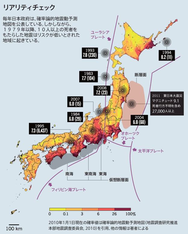 | 1652 Date: 2011-04-26 (Tue) ロバート・ゲラー教授への誤解 ロバート・ゲラー教授がNATUREに投稿された文章が教授自身の翻訳で紹介されていました。 私は教授の主張を少し誤解していたようです。下記に抜粋して紹介しますが、下線を施した部分を「現状の知識では・・・地震予知が不可能であることを率直に国民に伝え・・・」と補足すれば、教授の主張は充分に同意できるものであります。誤解に基づく厳しい批判をしたかもしれないことをお詫びします。先ずは教授の論考の抜粋を紹介します。 日本の地震学、改革の時 Robert Geller ![]() 図1:リアリティチェック 毎年日本政府は、確率論的地震動予測地図を公表している。しかしながら、1979年以降、 確率論的な地震動予測地図といえば信頼性が高いようにみえるかもしれないが、予測に用いられた手法が検証されるまでは、単なるモデルにすぎない。この地図で最も危険だと評価されているのが、東海、東南海、南海という3つの地域の「シナリオ地震」である。しかし現実には、1979年以降、10人以上の死者を出した地震は、この確率論的地震動予測地図において、比較的リスクが低いとされてきた場所で発生している。この矛盾からだけでも、確率論的地震動予測地図およびその作成に用いられた方法論に欠陥があること、したがって破棄すべきであることが強く示唆される。またこれは、昨今の一連の固有地震モデル(およびその類型である地震空白モデル)に対しても否定的な結果を示しており、確率論的地震動予測地図を作る際に仮定した物理モデルが、本来の地震発生の物理的過程と根本的に異なる誤ったものであることを示唆している。 正直な議論の必要性 今こそ、地震予知が不可能であることを率直に国民に伝え、東海地震予知体制を廃止して、大震法を撤廃する時である。日本全土が地震の危険にさらされているのであって、現在の地震学では、特定の地域のリスクレベルを的確に評価することはできない。その代わりに、研究者は国民と政府に「想定外に備える」ことを勧告しなければならない。そして、研究者は知っていることと知らないことの両方を正確に客観的に知らせなければならない。地震学の将来の基礎研究は、物理学に根ざし、厳密に精査され、顔の見えない官僚によってではなく、日本の一流の科学者によって導かれなければならない。 |