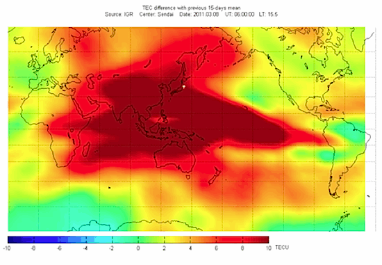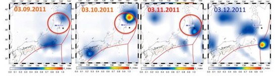 | 1675 Date: 2011-05-27 (Fri) 地震時には赤外線が放出されている 波源域の解析図や検潮儀の記録を見ると、東北地震M9.0の内容は四つの大きな地震が3分程度の間に起きていたことが推定されます。 ![]() 一方、地下における爆発の影響、つまり、解離ガスの発生によって生じる高圧の地下空間から、地震前後に空中に放射されるイオン化物質が検出されているようです。 「マグニチュード9の地震の前に急速に加熱された日本上空の大気」という報告がありました。このセミナーでは、以前から地震の前は蒸し暑くなるという言い伝えは、地下から高熱の水蒸気が噴出しているのが原因であると述べてきましたが、それを裏付けるような調査研究であります。 http://www.technologyreview.com/blog/arxiv/26773/ ![]() 上図は赤外線の放射を示すものですが、8〜10日に現れている高濃度の赤外線はCの震央付近に、11日は@とAの震央付近に、12日はBの震央付近に現れています。 ![]() 論文の最後には「今回のデータを最大限に活かすチャンスを作らなければ、地震研究に明日はないかもしれない。」とあります。 2010年1月にハイチで発生したマグニチュード7の地震の前に、DEMETER宇宙船から得られたデータでは、超低周波無線信号の大きな増 加を示していた。 これらの観測は Lithosphere-Atmosphere-Ionosphere Coupling メカニズムと呼ばれる考え方と一致している。 |