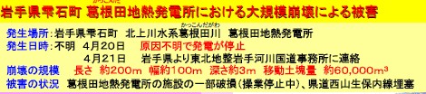 | 1672 Date: 2011-05-23 (Mon) 地熱発電も慎重な検討を要す 安全運転中の浜岡原発が菅首相の愚かな判断で停止され、中部電力は火力発電に切り替えつつあります。この流れの中で、安井至東大名誉教授の地熱発電を推奨するという記事がありました。CO2の地中封入とともに、地熱発電に関しても、地震誘発の可能性がありますから、慎重な検討が必要です。 ![]() 名誉教授の言葉を抜粋して紹介します。 ――――――――――――――――――――――――――――――― 【電力】東大名誉教授「原発の代替発電手段・本命は『地熱発電』」 原子力は現在、日本の電力供給の約4分の1を占めている。しかし、福島第一原発の 事故を受け、その見直しは避けられない。原子力に替わる新たなエネルギーは何か。 ーーーーーーーーーー 私(安井)が現時点で本命と考えるのは「地熱発電」。次いで、「中小水力発電」、「洋上 風力発電」が挙げられる。地熱発電とは、火山活動による地熱で蒸気を発生させて 発電する方法である。現在、日本には18か所の地熱発電所があり、合計で535メガ ワット(原発1基の半分ほど)の発電容量である。火山国である日本には、最も適している。 ――――――――――――――――――――――――――――――― さて、この発言は地熱発電による大規模な地すべりや崩落事故が起きていることを知っての上での発言なのでしょうか。それでなくても温泉が枯れたり湯の温度が低下したりで、温泉地では地熱発電に反対の声が上がっています。 つい先日も、宮城・岩手内陸地震の震源近くにある、鬼首地熱発電所で蒸気が噴出し人命が失われたばかりです。 地熱発電は、高熱の蒸気を吸い上げるために、地中内部の圧力を降下させ、そのために解離ガスという爆発する可能性のあるガスを発生させて、地すべりや、崩落の原因となっている可能性があるケースが多くあるのです。 @先日の鬼首の事故、 私(石田)は1998年に起きた雫石地震も、原因は松川と葛根田の二つの地熱発電所による影響ではないかと疑っております。 @:鬼首(おにこうべ)地熱発電所爆発事故2010/10/18 09:00 【秋田魁新報】 http://www.bahvideo.com/video/?1954423245-1 ――――――――――――――――――――――――――――――― 宮城・大崎市の鬼首(おにこうべ)を含む一帯は、鳴子温泉郷と呼ばれる日本有数の温泉地。地熱発電所の駐車場付近は、噴気孔まで距離があるにもかかわらず、道路は一面、白い灰のようなもので覆われていた。東北大学火山物理学・西村太志准教授は「非常に激しい爆発が起きた。20メートル直径の新しい噴出口ができましたし、土砂がかなり遠くの高い木にもついていますので、大きな爆発が起きたということがわかりました」と語った。激しい爆発の兆候は、1カ月前から確認されていた。 10月11日から、この手のものは、石を入れて沈静化するのが基本と聞いていましたから、石を入れることを開始しました」と語った。 (略)実は、こうした噴気孔ができるのは、この地域では決して珍しいことではないという。九州大学工学部の江原幸雄教授は「自然の状態での噴気地域では、新たに活動したり止まったりするのは頻繁にあるんです」と語った。こうした噴気孔を、地元では「地獄」と呼んでいるという。 A:澄川地熱発電所そばで、大規模地すべり発生 1997年5月10〜11日にかけて、秋田県鹿角市八幡平の澄川温泉背後で、幅400m・長さ700mの地すべりが発生した。 ![]() 5月4日 澄川温泉旅館の飲料水が濁る。 地すべりの発生直後に水蒸気爆発が発生した。秋田航空のヘリコプターのパイロットがその瞬間を上空から目撃していた。水蒸気爆発は少なくとも2回発生したという。2回目の噴煙の写真では、2方向の噴煙が確認される。垂直に上昇する噴煙は噴石と大量の水(おそらく温水)を含むコックステイルジェットであることが確認できる。もう一方は、斜め上方あるいはほぼ水平に噴き上げる噴煙で、砂質の火山灰を含む熱い水蒸気と思われる。 B:2008年葛根田地熱発電所で大規模地すべり発生 2008年4月20日、岩手県雫石町葛根田地熱発電所で大規模な地すべりが発生。 ![]() ![]() 被害状況は県道西山生保内線の供用区間の終点部約30mが崩落土砂により埋塞、一級河川・葛根田川が崩落土砂により半分程度閉塞、葛根田地熱発電所の蒸気配管と熱水配管の損壊等により、蒸気供給がストップしました。 このことにより、冬期通行止めを解除したばかりの県道西山生保内線が現場から約7km手前のゲートで全面通行止めに切り替えられました。 |