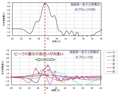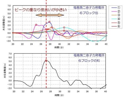 | 1688 Date: 2011-07-13 (Wed) 福島第一原発を襲った津波について 福島第一原発を襲った津波に関して、複数の波源から発生した津波のピークが、重なりあったことが高さが大きくなった原因であるという報告がありました。 ――――――――――――――――――――――――――――――― http://kenplatz.nikkeibp.co.jp/article/const/news/20110711/548514/ 福島第一の津波は13m、波形のピーク重なり巨大化 2011/07/12 東京電力は7月8日、東日本大震災で福島第一原子力発電所と福島第二原発にそれぞれ来襲した津波の高さを数値解析で求め、初めて公表した。福島第一原発の津波は最大で13.1m、福島第二原発は最大で9.1mと推定。南北方向に10kmほどしか離れていない両原発で差が出た理由について、福島第一原発では複数の波源断層から生じた津波の波形のピークが重なり合ったためと説明する。 ■福島第一原発に来襲した津波の解析結果 (資料:東京電力) 東電による津波の解析は、国土地理院が推定した震源断層モデルをベースにした。三陸沖から房総沖までを東西5ブロック、南北16ブロックの計80ブロックに分割。それぞれの断層ブロックから発生する津波を重ね合わせることで、震災で発生した津波を再現した。実際の津波高さは、潮位計が損壊したので観測できていない。 東電は、これらの断層ブロックのなかで両原発への影響が大きいブロックを六つ抽出し、両原発の沖合約30kmの水深150m地点におけるそれぞれの時刻歴波形を計算した。これより浅い沿岸部は海底地形がなだらかで、両原発で津波の増幅率に差がないという。 ■解析に使った津波の波源モデル ![]() ![]() (資料:東京電力) 解析結果によれば、福島第一原発を襲った津波は沖合約30kmの水深150mの地点で、地震発生後26〜30分の短い時間で波形のピークが集中している。六つのブロックからの波を合成すると高さは約7mとなる。一方、福島第二原発を襲った津波は波形のピークが地震発生後24〜31分に分散し、合成した波の高さは約5mと、福島第一原発よりも小さい。 ![]() ![]() ――――――――――――――――――――――――――――――― このセミナーでの解説記事は[1674]に紹介してありますが、三陸沿岸の4箇所で地震・爆発が起こり、海底の隆起があったのではないかと分析しています。そして、福島原発を襲ったのはいわき市沖合で起きたBの爆発による津波ではないのかと述べました。 福島第二原発を襲った津波がそれほど大きくなかったことから考えると、東京電力が解析した「津波の合成効果」論そのものは十分に説得力がありますが、[1674]で述べたBによる津波との合成を検討したほうが説得性があるように思います。両者を比較すると東京電力が計算に採用した津波波源域モデルは、[1671][1675]で紹介した@とAの地震爆発による津波を想定しているに過ぎないことがわかります。 今回の津波はいわき市沖合に発生した地震爆発による津波が大きな影響を与えていることは明らかでしょう。その地震爆発がCCS作業によって引き起こされたという疑念の「打ち消し証明」をする責任は、作業実施者である常盤共同火力であり、CCS推進の中心に立つ(財)地球環境産業技術研究機構(RITE)であることは当然でありましょう。 本日までに3名の方から、貴重な「活動資金」を援助していただきました。 |