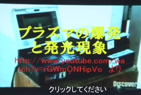 ![]() さて、この発光現象のメカニズムに関しては地震発生のメカニズムと同じで、熱解離したプラズマ状態の解離ガスが高速度で噴出する時の発光ではないかと考えています。地震の場合にはマグマ溜りなどの密閉空間内で解離ガスの爆縮(Implosion)が引き金になって起きる容器破壊という爆発(Explosion)現象下で高速移動するのですが、この場合は爆縮も爆発も起きないで、高圧のプラズマ状解離ガスが狭い空間を高速移動して発光しているのではないかと思います。したがって解離ガスが発生していることは確かですから、地震に伴う現象とも考えられますが、この場合のように現象が生じても爆発しない場合もあるわけですから、発光現象は地震の前兆であるとして「前兆」という言葉にこだわると混乱すると思います。富士山の地下内部でマグマの上昇、温度の上昇によって、変化が起きていることは疑えないことでしょう。 解離ガスがプラズマであり、解離ガスを詰めた容器が爆発すると発光現象が起きることは次の動画からわかります。解離ガスを利用した水暖房機の安全装置を取り外して、いたずらでロケット遊びをしているアメリカの番組から借用したものですが、容器破壊の瞬間に発光していることが観察できます。画像をクリックしてください、動画が流れます。