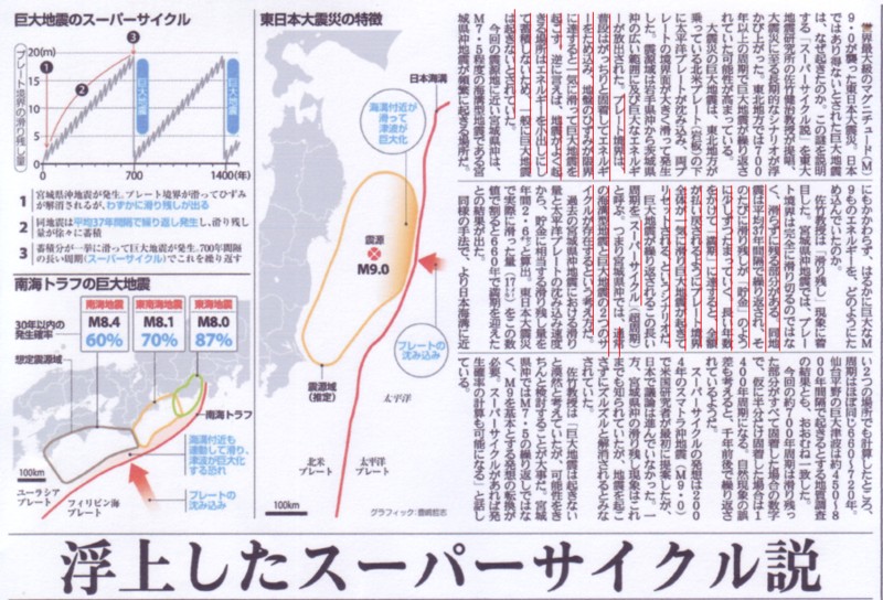 | 1699 Date:2011-09-12 (Mon) 地震学を混乱させるのは止めて欲しい 地震の周期的活動には通常のサイクル(数十年)とスーパーサイクル(700年程度)という長周期の繰り返しがあるという説を東大地震研究所の教授が提唱しているそうです。産経新聞(9月11日付朝刊)に載っていました。 ![]() 産経新聞9月11日朝刊より 記事の中身には地震爆発説では全く受け入れられない論点がありますので、気付いた点を地震爆発理論からの見解として述べておきます。 ![]() なお、地震現象と周期性に関しては既にこのセミナーの[263]地震周期説という妄説、ならびに[974]〜[976]、[1042]など各所で論じていますので参考にしてください。 |