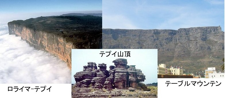 | 1817 Date: 2013-04-09 (Tue) テーブルマウンテンとギョーの形成メカニズム考 南アフリカやギアナ高地のテーブルマウンテンがどのようにして形成されたと考えられているのかをネットから拾ってみました。様々な意見があるようです。 ![]() 南ア・テーブルマウンテン http://www.geocities.jp/nirekaoru/s-africa11-futatabi-table-mountain.html テーブルマウンテンの頂上は非常に硬い珪質砂岩で出来ている。珪質岩の円礫も含まれている。先カンブリア時代の河川堆積物だという。 http://blog.goo.ne.jp/shodo_february/e/572fe47f0535b482ac90699f931130ad 岩質はテーブルマウンテン・サンドストーンと呼ばれる珪質砂岩の一種で、固い部分だけが残ったものだそうです http://www.geo.tsukuba.ac.jp/gansekiHP/topic.html 地質学的にも大変面白い山です。山体上部を構成する岩石は、下部古生界・Table Mountain層のアルコース砂岩で、層理面はほぼ水平です。山体下部には上部原生界のTigerberg層が露出していると地質図にありますが、確認できませんでした。山腹付近には5.3〜6.1億年の年代を示す優白色花崗岩(Cape Granite Suite)が露出しています。 http://www.icon.co.za/~jsj/sa21.htm 南アフリカで、最も有名なあの山は、どうして頂上が(ちょうじょう)あのように平(たい)らなのでしょう。 テ−ブルマウンテンがあるケ−プ地方は、およそ6億5千万年前、地下深くからマグマが上昇してきて、地表に出ないまま、ゆっくりと冷えて固まりました。この岩石はケ−プカコウ岩と呼ばれ、現在でも Sea Point に行くと見ることができます。 その後、この地域の地層はいったん持ち上がり、風雨や海水による浸食を受けました。数千万年が経つと、地表は広くケ−プカコウ岩が現れていましたが、今度はその地層が次第に沈み始め、全て海の中に沈んでしまいました。浅い海で今度は小石や砂がたまり、地層をつくり始めました。やがて、また持ち上がり、地上に現れて、再び浸食を(しんしょく)受けることになりました。 現在テ−ブルマウンテンの上部に見られる白っぽい岩石は、海底で堆積した、珪岩と呼ばれる砂岩の一種で主にできています。この岩石は浸食に強く、これによって、現在のテ−ブルのような平らな形が出来上がりました。 ギアナ高地 ![]() 2010年のエイヤフィヤトラヨークトルの噴火で、航空機が飛行できなくなりましたが、火山の噴火では、噴火物が水に接すると粒子が細かくなって、空中に浮遊するため飛行機のエンジンをいためてしまうようです。氷底湖内部での噴火でも、細かい粒子が堆積して岩石の層状構造(地層)をつくるのでしょう。 次の動画はカナリア諸島エル・イエロ島沿岸で起きている海底火山による海水の濁りを撮ったものです。こうした現象が氷底湖で繰り返し起きてできたのが、テーブルマウンテンやテプイだと考えます。現在の姿は、地殻移動によって温暖な地域に移ったために、氷床が融解して姿を現したのです。大陸が沈降して海没すれば、[1813]で述べたguyotとして海底にあることになります。 以上解説したように、石田理論では、ギョーが波蝕によって切頭されたとする通説とは違うメカニズムを考えています。 Wikiによる解説[ギヨーの形成] 比高1000m以上の孤立した円錐形の山は海山(seamount)と呼ばれ、特に頂部が平坦のものをギヨーと呼んでいる。数多くの調査と採泥の結果から、ほとんど火山であることが分かってきており、ギヨーの平頂面から玄武岩の円礫や浅海性の化石などが採取されたことから、波蝕によって平坦化されたことが判明した。 ギヨーは中生代白亜紀から第三紀中新世までの間のさまざまな時期における波蝕によって切頭され、その後、さまざまな原因によって現在の深さにまで沈降したものと考えられている。 赤道付近に存在する多数の環礁は、ギヨーの深さに玄武岩の基盤を持ち、海面に達する厚さの珊瑚石灰岩をかぶっている。ここではこの沈下過程に珊瑚が上方に生育して環礁にまで発展したのであり、生育しなかったり止まったりしたところではギヨーとなったのである。 |