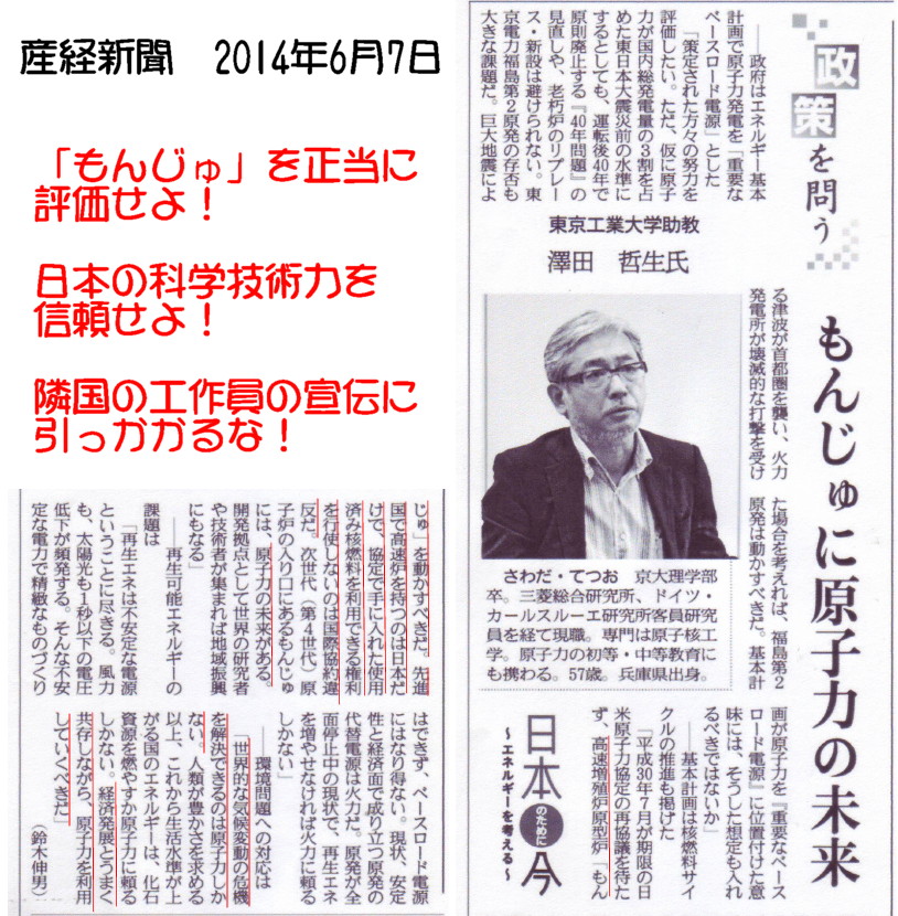 | 1978 Date: 2014-06-07 (Sat) 「もんじゅ」計画の積極的推進を 今日の産経新聞に「もんじゅ」の計画を積極的に推進すべし、という東工大の澤田助教の記事が載っていました。 ![]() こうしたまともな意見があることを二人の総理大臣経験者は知らないのでしょうか。 知らないで「核燃料の置き場がない、トイレがないマンションだ」と騒いでいます。[1974]で紹介したS君同様に、「核のトイレ問題」に翻弄されています。 もっと日本の科学技術を信頼し、発展思考で対処することが世界の貧困層を救うことにもなると考えるべきです。 疑問に思うことは、原発を止めて化石燃料による発電に切り替えたら、二酸化炭素が発生し、温暖化防止策に逆行するはずですが、脱原発派の人は何も問題にしていません。 あれだけ地球温暖化を危惧してCO2排出に反対していた人が、今は黙っています。 いい加減に隣国の工作員による宣伝から目を覚ましていただきたいと思います。隣国では原発の停止なんて露ほども考えていません。核兵器の生産も止めません。止めないのは隣国に核の平和的利用さえも中止させようとする工作だけです。 |