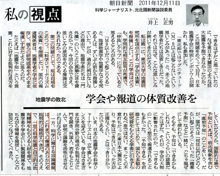 | 2004 Date: 2014-07-09 (Wed) 地震学の敗北はどうなったのか 東北大震災の後で地震学者たちは「地震学の敗北」を認めて、大反省に入ったのではなかったのか。