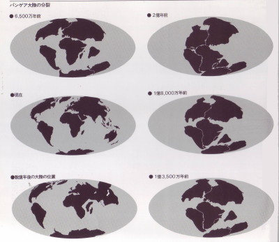 しかし大陸の下ではどうであろうか。地球上に大きな大陸があると、海の下の熱と比べて、大陸の下の熱は逃げにくい。海の水が移動しながら熱を奪ってくれるのと違って、大陸の下の岩石は移動することができないから、熱は伝導で移るだけであり、非常に効率が悪い。そのため、大きな大陸の下には熱がたまりやすい。つまり、大陸が毛布のような役割をして熱をその下にためてしまうのである。この現象は、毛布効果と呼ばれている。 大陸の下に熱がたまると、そこに地球内部のマントル物質の上昇流が起こり、大陸を下から突き上げる。こうして大陸部を中心に対流が起こり、大陸は引き延ばされ、裂け、左右に分かれていく。 さらに裂けていくと、大陸の地殻は薄くなり、その下のマントルの層が表面に出てくる。そこに海水が流入すると海ができる。そして、マントルの層が表面で冷やされて固化する。これは結局、海嶺が誕生したということなのである。つまり、大陸を割って海嶺が誕生したことになる。 今から二億五〇〇〇万年前に、パングアという巨大大陸があった。それは、現在の地球上のすべての大陸を合わせた大きさだった。 この大陸は、地球の半分を覆う巨大な大陸であった。そして、その下に、毛布効果により熱がたまり、やがてパンケアは割れ、今の諸大陸に分かれていったのである。 大西洋の中央部に延々とのびる大西洋海嶺は、パンゲア大陸が割れてできた海嶺である。大西洋という大きな海は、大陸が割れた跡にできた海であり、その中心にある大西洋中央海嶺は、地球が自分白身を効率的に冷やそうとしてつくった冷却システムなのである。 ーーーーーーーーーーーーーーーーーーーーーーーーーーーーーーーーーー @ 海の下では効率的な冷却が行われているのではない。陸上のほうが空気の移動が激しくて冷却は効率的である。そのために大陸の地殻は厚くなっている。アイソスタシーの概念が間違っている。 ![]()