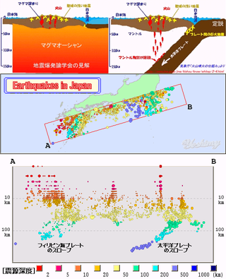 地質学では、初期の地球は深さ2000kmを越えるマグマの海で覆われていたと考えられているそうですが、現在は2900kmまでのマントル層は固体であるとなっています。もしマグマオーシャンであれば、プレートテクトニクスは機能していないと考えるのだそうですが、地震爆発論では現在もマントルは熔融している、つまりマグマオーシャンであると考えています。その証拠が浅発地震と深発地震の明らかな違いです。ここでは述べませんが、マントルが固体ならばこれだけ明らかな地震波の相違は現れないはずです。
