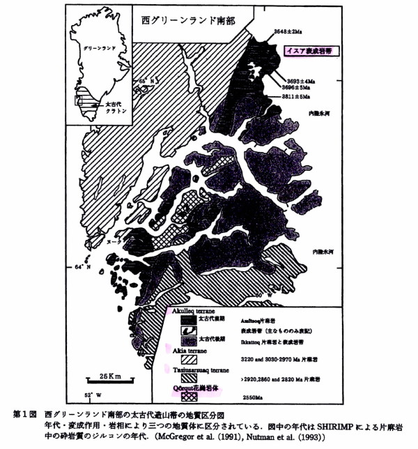 著者達は1990年以来地球初期の状態を直接示す物証を探すために、世界の主要な太古代造山帯の一つであるグリーンランド南西部の調査を行なってきた。この地域の調査により少なくとも38億年前のテクトニクスを推定することが可能になった。