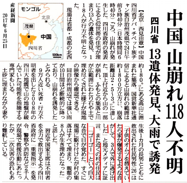 また、新聞報道では、四川大地震が起きたのとほぼ同じ地域にある茂県という場所で地震が起きました。