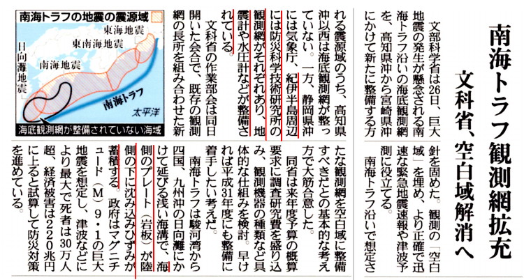 産経新聞2017年6月26日「南海トラフ地震と大震法」より