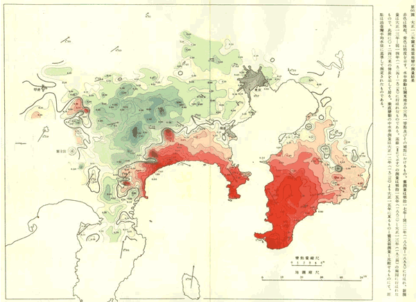 関東大震災の隆起・沈降分布
