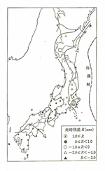 図をみると残差が一秒のライン、二秒のラインが日本海溝のラインと平行になっているのが分かります。日本海溝のラインから、大陸方面(日本海は大陸の池みたいなものです)に向けて、地殻は厚くなり、第二層も地表をはなれていくのです。地震に関しては感度が鈍くなっていくのです。海溝ラインに近い地域は感度良好(あまり嬉しくはないことですが)な地域なのです。これで深発地震の謎は解けていきます。