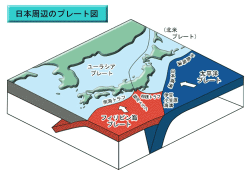 | 1138 2006-02-11 (Sat) 北米プレートはどうなったのか 名古屋市の消防と防災サイトにも、東海地震の解説ページがあり、日本をとりまくプレートの様子が立体的に表示されています。ここでも、北米プレートは明確には描かれていません。ほかのサイトでは依然として東北地域は北米プレートの上に乗っていると解釈する図面が掲載されています。 ![]() (名古屋市の消防と防災サイトより) こちらのプレート解釈が定説になっているのなら、日本海中部地震や北海道南西沖地震の発振機構をどうやって説明するのでしょうか、二つの地震がどのような機構で発振したと説明するのか、ご存知の方は教えていただきたいと思います。 絵を見て感じる疑問 ・相模トラフから潜り込んでいくプレートは太平洋プレートに衝突するようにみえるが、衝突した後どうなるのだろう。 ・琉球海溝辺りで地球内部に潜り込んでいくフィリピン海プレートはどこで生まれどのような仕組みで運ばれてくるのか。 にある「関東地方周辺のプレートシステム」という論文でも、北米プレートの名前は出てきておりません。またフィリピン海プレートの姿に関しては3ケースのモデルがあるようで、はっきりした姿は決まっていないようです。