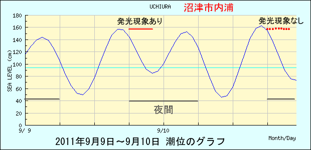 | 1747 Date: 2012-09-10 (Mon) 富士山麓での発光現象(2) Mt.Fuji Live Camera 絶景くんの動画を拝借して、富士山麓の発光現象のメカニズムを探ってみました。 ![]() [1708]で紹介しました富士山麓での発光現象ですが、次の動画(画面をクリックしてください)で見ると、夕刻6時から夜の10時ころまで、電気スパークのようなものではなく、連続して発光していることが分かります。 ![]() 夜の10時からはまったく発光しないので、不思議だなぁと思っていましたが、潮汐現象と関係しているのではないかと推定できます。 ![]() 下げ潮の時には、地下内部のマグマにも作用する起潮力によって、マグマの位置は下がるはずです。よって、マグマ溜り内部の圧力が下がり、解離現象が活発に進んでいる時間帯だと推定できます。解離現象によって発生したプラズマ状態のガスが溶岩台地内に形成されている空洞内を高速移動することで発光現象が起きるのでしょう。潮が変るときはプラズマ流体の動きが止まるために発光も止まるのではないでしょうか。次にくる上げ潮の段階では圧力が増加するために解離反応は起こらず、プラズマ流体が発生しないということでしょう。 しかし、潮位としては同じような条件になる翌日の10日には発光していません。潮位のほかにも、気温・水温・気圧など、さまざまな条件でプラズマ流体の発生・流動状況が変化するのではないかと思われます。2011年でみると気温が低下する冬場(1〜3月)には発光しなかったことを[1708]で紹介しました。 追記:その後他の日時についても同じようなチェックをしてみましたが、22時前後で発光が止まる原因が潮位と関連しているという明確な証拠は得られませんでした。21時30分〜22時30分の間で終了することが多いので、人工的な店舗の明かりという見方もあるのでしょうが、この辺りには店舗、ゴルフ関係施設など存在しないはずですから、不思議です。仲間の一人が、自衛隊が秘密の電磁波兵器の開発をやっているんだろう・・・と言ってましたが、どうでしょうか。この辺りの地理に明るい方があったら、情報をお寄せください。とにかく不思議な発光現象です。