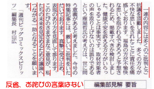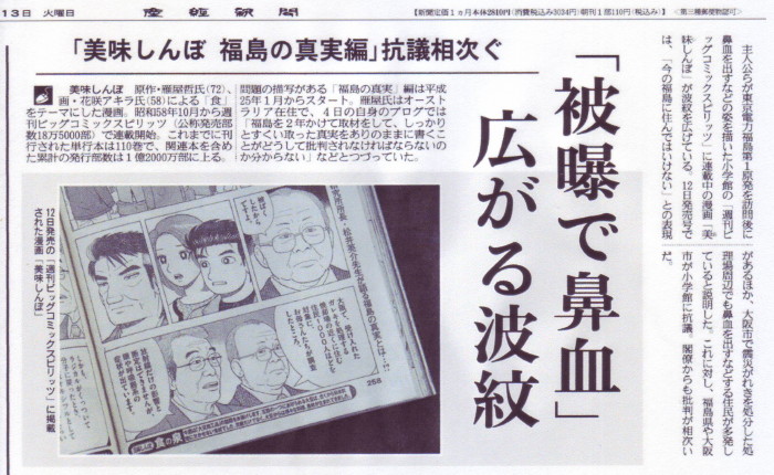 | 1966 Date: 2014-05-17 (Sat) 島崎氏更迭運動もう一つの理由 島崎氏更迭運動のもう一つの理由は、今、マスコミという亡国の権力が立ち上がってきている、と霊人ハイエクが警告しているからです。「美味しんぼ」問題で明らかになったように、マスコミは責任を取る法的な規制が全くないので、やりたい放題です。福島の住民が苦しんでいるのに、自分たちが風評を捏造したことに頬っ被りしています。出版社はようやく「表現の方法を検討します」とコメントしましたが、謝罪とか反省の言葉は全く見られません。 ![]() |