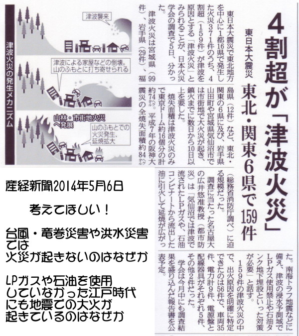 | 1959 Date: 2014-05-06 (Tue) 地震の報道は産経新聞もダメ 昨日の地震を産経新聞が報じていますが、他紙と同じ内容で独自の視点はありません。定説を妄信しているだけです。 ![]() ![]() ついでにもうひとつダメ報道を追加します。 ![]() また、LPガスや石油燃料などが使用されていなかった江戸時代にも、地震では大火になるケースがあります。何故、大火になるのか、別の要因があるはずです。 さらに言えば、津波被害で漂流した住民は火傷を負っているケースがあることをどうのように考えるのか、地震の発生原因が地下における水素爆発であることを真剣に検討して頂きたいと思います。 |