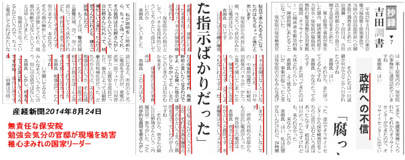 | 2012 Date: 2014-08-24 (Sun) 吉田所長の政府不信に思う 今日の産経新聞、吉田調書7は原発事故当時の国家のリーダーが総理大臣以下如何に無責任で「稚心」まみれであったかを証言しています。 ![]() 菅総理の質問に「水素爆発と水蒸気爆発はどう違うのか」というものがありますが、やはり「解離ガス」が爆発しているという概念が質問者にも回答者にも無いように感じられます。 解離ガスの爆発事故は[1518]、[1562]で紹介したような大事故を起こしますが、福島の原発事故の原因はこの「夢の暖房機」大爆発を規模の大きなものにした「未知科学」での事故だと思います。吉田所長も理解していなかった「未知科学の事故」ですが、その中では善処されたと、その勇気を評したいと思います。 また、2009年の選挙では、民主党政権の誕生をバックアップした一人でもある「ミスター円」こと榊原英資氏の「政権交代、それは幻想ではない、歴史的な必然である!」という書籍を、民主党候補者と選挙戦で戦いながら、呆れて読んだことを思い出します。結果は惨敗でしたが、敗戦の相手が国家のためにどれほどの成果を残したかは、歴史が糾してくれるでしょう。 政権交代を誘導した榊原氏も対談相手の小沢一郎ともども、国家の衰退に対して責任が取れるのでしょうか。反省の言葉も聞いたことがありません。当時を思い出して、いろいろと思いが湧いてきます。 故人となってしまった吉田昌郎氏が「しかし、何をもってこの国は動いていくんですかね。面白い国ですね」と語っていますが、早く責任感のある人が国家リーダーになれる体制を作らなければならないと思います。 私は明治維新をやり直すこと、明治の憲法制定をやり直し、国家元首は国民投票による「大統領」とする新・日本国憲法を制定すべきだと思っています。 参考:水の熱解離が理解されていない件について Re: 解離ガス発生の疑問