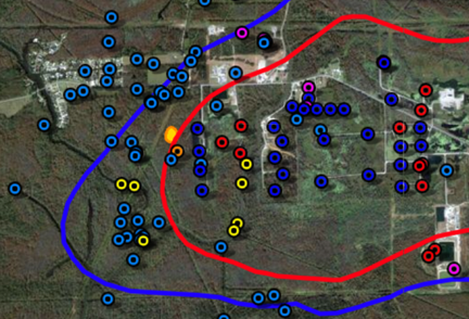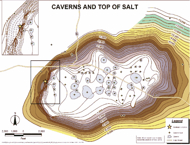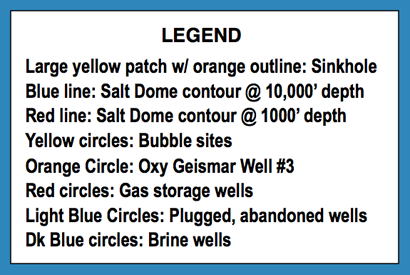 ![]() ![]() Light Blueは栓をして放棄したwell(cavern)です。 オレンジ色のシンクホールのすぐ南に、Oxy Gesmar Well#3があるのですが、シンクホールにも放棄したwellがあったのでしょうか。 ![]() |