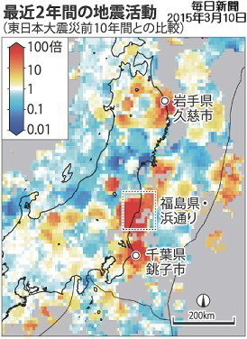 | 2098 Date: 2015-03-10 (Tue) 地震理論の間違いを認めよ 今日の毎日新聞には東北大震災の後、地震発生の頻度が高くなったという報道がありました。「数百年間蓄積された歪エネルギーが解放されて大地震になった」という定説地震学説から言えばまったく説明の付かない現象ですが、「活動活発化による巨大地震の発生にも一層の警戒が必要」と地震学者は平然と語るのみです。毎日新聞の記事を紹介します。 ーーーーーーーーーーーーーーーーーーーーーーーーーーーーーーーーーーーーーーー <地震>発生頻度、震災後100倍 東北・関東の一部 毎日新聞 2015年03月10日 ![]() 最近2年間の地震活動 遠田教授は、大震災2年後の2013年3月11日から今年2月18日までに東日本の地下20キロまでで起きたマグニチュード(M)1以上の地震の発生頻度を、大震災前の10年間と比べた。余震が著しく多かった大震災直後の2年間は除いた。 発生頻度が約100倍となっているのは、福島県・浜通り、千葉県・銚子、岩手県・久慈などの一帯。いずれも以前は地震が比較的少なかった地域だが、大震災に伴う地殻変動の影響が残っているとみられる。青森県沖から千葉県沖までの大震災の余震域以外の内陸部にも、活動が活発な地域がみられた。 また、首都圏を震源とする「首都直下地震」が懸念される地域は、対象を広げて地下100キロまでで起きた地震を分析。その結果、最近2年間のM3を超える地震の発生頻度は、大震災前の10年間と比べ約2倍と高くなっていた。 新潟県・中越地方などは、大震災前に比べて地震活動が低調だったが、大震災前に発生した内陸地震の余震の減少が原因とみられる。 一方、気象庁は9日、東日本大震災の余震活動状況を発表した。最近1年間(昨年3月11日〜今月7日)に余震域で観測した震度1以上の有感地震は737回と、大震災前10年間の年平均306回を大きく上回り、「依然活発な状態」と分析した。【千葉紀和】 「地震によって歪が形成され、それが新たな原因で余震が起きるというものですが、「余震の原因が地震による歪である」という珍解釈にいたっては唖然とするばかりです。地震が地震を生む、こんな馬鹿げた地震論をいつまで信奉するのでしょうか。」
