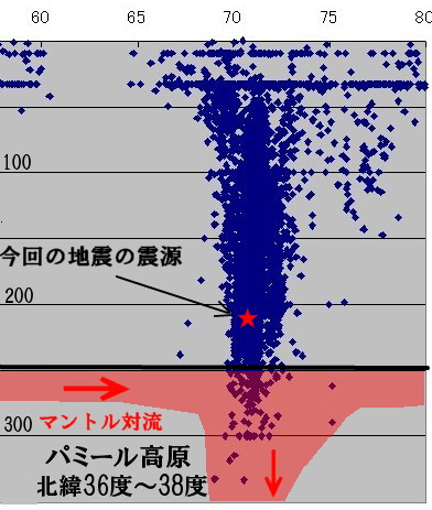 | 2219 Date: 2015-10-29 (Thu) アフガン深発地震の再考 今回のアフガン地震は[1527]内陸のタジキスタンで起きる深発地震で紹介したパミール高原南部の内陸性深発地震に該当する事に気付きました。[1527]では「なぜこのような大陸奥地で深発地震が起きるのか不思議です。深度200kmちょっとしかないのもなぜなのかその理由が分かりません。分かる方があったら教えてください。」とコメントしておきましたが、その後誰からもコメントは頂いておりません。 [1527]では地殻の厚さを50km程度だとすればその下にマントル対流があって、その内部で起きる深発地震ではないだろうかと推定しました。 ![]() 一つの仮説を展開します。 何れにしても[1482]でコメントしたように「パミール高原一帯で、何故深発地震が発生するのか、謎を秘めたままですが、定説(プレート論)の断層地震説では説明が不可能です」というのは間違ってはいないと思います。 [2218]では、“地震学者の怠慢”と書きましたが、地震爆発論でも何故このような大陸奥地で深発地震が起きているのか、地殻の厚みをも含めて明確に理解しているわけではないことをお断りし、何方かに説得力のある解説をお願いしたいと思っています。 |
