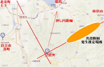 ブログ主もそうですが、断層地震説では余震分布を見て断層を推定する傾向がありますが、火山フロントと断層は関係がありません。[2300]や[2359]で解説したように、熊本地震でも、鳥取地震でも本震の爆発では、直行する共役断層が地上に現れています。余震の分布から、断層を決めるのは「断層地震説」の「間違い・欠陥」です。 これ以上の大規模な阿蘇山の噴火(カルデラ噴火)を避けるためにも、火山フロントにおける地熱発電は慎重に(自然噴出の蒸気のみを利用)操業していただきたいと思います。 強制的な汲み上げは地震を引き起こす危険性が高い
