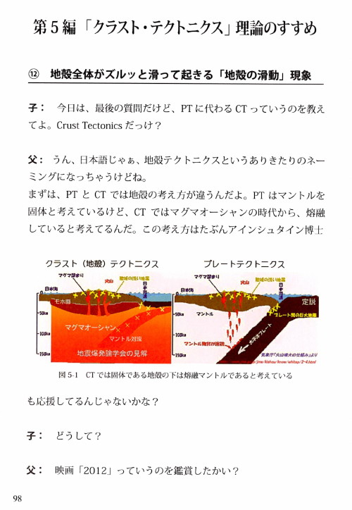 | 2409 Date: 2017-02-07 (Tue) プレート論を捨ててクラスト・テクトニクス理論へ 標題のようにプレートテクトニクス論を捨ててクラストテクトニクス論へ脱皮することをお勧めします。 拙著「[熊本地震」にみる地震学の矛盾」より第5編の「クラスト・テクトニクス理論のすすめ」を紹介します。 ![]() ![]() ![]()