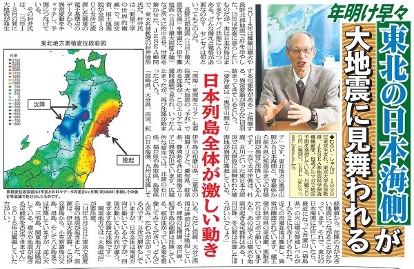 | 2395 Date: 2017-01-12 (Thu) MEGA地震予測は意味があるのか 東大土木出身の村井名誉教授が行なっている地震予知が「驚異の的中率がある」と報じられていますが、疑問に思うことがたくさんあります。内容がデタラメだというコメントもあります。 村井氏は「理学的な地震発生のメカニズム」を探求しているのではなく、「工学的な意味での実用学」として地震予知を行なっていると述べておられますが、メカニズムを知らないで行なう実用学は、不安要素ばかりが広がる危険な面もあるのではないでしょうか。 ![]() 一昨年の見立てはハズレでしたが、今年は南関東? 南関東で新兆候! 驚異的な的中率で注目「MEGA地震予測」 1月にかけ震度5以上か、緊急性要する「警戒レベル5」 2017.01.08 地殻の異常変動を観測し、巨大地震を予測する「MEGA地震予測」。その驚異の的中率が注目されているが、本紙(2016年11月24日発行)がMEGA予測を基に「16年12月から17年1月にかけ、震度5以上の地震が発生する緊急性が高い」と報じた南関東で、新たな動きが出た。危険が差し迫っていることを示す不気味な兆候が出現したというのだ。 「東日本大震災の後、12年10月ごろから日本は列島全体が大きく変動し始めた。特に、南関東周辺では、地面が大きく沈降するなどの『異常変動』が狭い地域で混在しており、非常に危険な状況が生まれている」 MEGA地震予測を主催する「地震科学探査機構(JESEA)」の村井俊治会長によれば、南関東周辺で沈降を示してきたのは、八丈島、式根島(いずれも東京)、榛原(静岡)など。 一方、八丈島、式根島に挟まれるように位置する三宅島(東京)は隆起が進んでおり、3島の間では、浮き上がろうとする力と沈み込もうとする力の境で“歪(ひず)み”というエネルギーがため込まれ、地震が発生しやすい状況にあるという。 さらに隆起する足立(東京)と沈降する式根島の間では、高低差が6・8センチに拡大。北茨城(茨城)と館山(千葉)の格差も13センチに広がり、危険な兆候が現れている。 16年6月末〜9月上旬にかけては、伊豆半島や伊豆諸島で、4〜5センチ超の異常変動も断続的に観測された。 だが、10月に入って、その動きはピタリと止まったという。 「これまでの観測から、巨大地震は異常変動の後、大きな変動のない『静謐(せいひつ)期間』を経て発生することが分かってきた。南関東周辺では、10月に八丈島で1度、異常が見られた後、大きな変動が止み、『静謐期間に入った』とみることができる。12月から17年1月にかけて、南関東で震度5以上の地震が発生する可能性がいよいよ高まっている」と村井氏は指摘する。 西日本では、特に注意が必要なのは四国だ。 「高知県の室戸岬、足摺岬などの動きがおかしい。沈降が進み、水平方向の動きも周囲と異なる動きを見せている。これは付近に歪みがたまり、地震を起こすエネルギーが蓄積されていることを示しており、警戒が必要だ」(村井氏) JESEAはこれまで、16年10月21日に鳥取県中部で震度6弱を記録した「鳥取地震」を予測。11月22日に発生した福島県沖を震源とするマグニチュード(M)7・4の地震なども前兆を捉え、警鐘を鳴らしてきた。 警戒レベルは1〜5に分類し、鳥取・福島両県は大地震発生前、震度5以上が発生する可能性が極めて高いという「レベル4」に指定していた。 南関東は現在、さらに緊急性を要するという「レベル5」に位置づけている。四国は「レベル4」の状況だ。 地下にたまったエネルギーの留め金は、台風や低気圧など外的要因によっても外れることがあるとされる。年末年始は気が緩みがちだが、地震への備えは万全にしておきたい。 ■MEGA地震予測 測量工学の世界的権威で東京大学名誉教授の村井俊治氏が立ち上げた民間会社「地震科学探査機構(JESEA)」(東京都)が実施している。 地上約2万キロメートルを周回するGNSS(衛星測位システム)のデータを利用。国土地理院が公表する全国約1300カ所の電子基準点で、どのような地殻変動が起きているかを観測し、地面が大きく沈むなどの「異常変動」を突き止めることで巨大地震の発生地域を予測している。 地殻変動は通常1〜2センチほどの範囲でとどまるが、16年10月21日の鳥取地震の前には、鳥取・島根両県で4〜5センチ超の異常変動が観測された。 ーーーーーーーーーーーーーーーーーーーーーーーーーーーーーーーーーーーーーーーーーーーーーーーーーーー 「3島の間では、浮き上がろうとする力と沈み込もうとする力の境で“歪(ひず)み”というエネルギーがため込まれ、地震が発生しやすい状況にあるという」 とありますが、どのようなメカニズムで八丈島と式根島が沈降し、三宅島が浮き上がろうとしているのでしょうか。 また、その境に本当に“ひずみというエネルギー”がためこまれるのでしょうか。“ひずみ”が力学的に意味を持つ(弾性歪)のは、フックの法則が成立するから、つまり外力が作用して地殻に内部応力が生まれている時だけですが、そのような外力は何処から発生するのでしょう