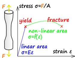 応力-ひずみ曲線 一般的に、ひずみを横軸に、縦軸に応力を縦軸にとって描かれる。材料によって応力-ひずみ曲線は異なり、縦弾性係数、降伏点、引張強さなど、基礎的な機械的性質を応力-ひずみ曲線から得ることができる。 ![]() 応力-ひずみ曲線 出典: フリー百科事典『ウィキペディア(Wikipedia)』 fractureというのは砕けた(骨折など)状態のことで、力学的には死んだ歪です stressとは応力です。応力が蓄積されるのなら大変怖いことですが、そんなことは力学的には起こりえない妄想です。精神的なstressの蓄積と混同しないことが肝心です。 マダ ワカラナイノカ! |