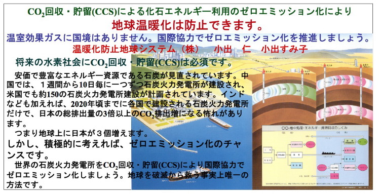 | 2422 Date: 2017-03-06 (Mon) CCS推進者の危険すぎる低認識、CCSを止めよう 温暖化防止地球システム(株)という会社があり、代表者の小出仁・小出すみ子御両名がサイトを開いています。