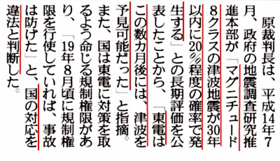 | 2430 Date: 2017-03-18 (Sat) 現実味が加速している「間違いだらけの地震学が国を滅ぼす」 前橋地方裁判所の原道子裁判長が、福島第一原発の津波災害で、「巨大津波の到来は予見可能で、対策をすれば事故は回避できた」として国と東電の責任を認め、賠償を命じました。これは第二の樋口英明なんでしょうか。([2105]参照) 地震学者の無知にも原因があります 東京電力福島第1原発事故の影響で福島県から群馬県に避難した45世帯137人が国と東電に計約15億円の損害賠償を求めた訴訟の判決が17日、前橋地裁であり、原道子裁判長は「巨大津波の到来は予見可能で、対策をすれば事故は回避できた」として、国と東電の責任を認め、計3855万円の賠償を命じた。 全国で起こされている28の同種集団訴訟で初の判決。原告数は計1万2千人以上に及び、今後の各地裁の判断が注目される。 (1)東電と国は津波を予見し事故を回避できたか(2)国は東電に安全対策を取らせる権限があったか(3)国の指針に基づく東電の賠償は妥当か−が主な争点だった。 原裁判長は、平成14年7月、政府の地震調査研究推進本部が「マグニチュード8クラスの津波地震が30年以内に20%程度の確率で発生する」とする長期評価を公表したことから、「東電はこの数カ月後には、津波を予見することが可能だった」と指摘。「非常用電源の高所設置などの対策を取れば事故は発生しなかった」とした。 また、国は東電に対策を取るよう命じる規制権限があり、「19年8月頃に規制権限を行使していれば、事故を防ぐことは可能だった」と、国の対応を違法と判断した。 ![]() ![]() 「M8クラスの津波地震が30年以内に20%の確率で発生する」という地震学者の発表で、浜岡原発に設けられたような巨大な津波防御壁を構築しなければ罰せられる、というのはまったく滑稽は話です。 地震爆発論から見た東北大震災の真相でも解説しましたが、あの津波は二つの津波が不幸にも第一原発の前で重なったものです。しかも南方からの津波は勿来沖で行っていたCCSによって起きた爆発によって発生した可能性があります。CCSを実施していなければあのような事にはならなかったはずです。 また当時の菅首相が知ったかぶりをして邪魔立てしなければ、冷却はすばやく行われていたはずです。女川も福島第二原発も事故を起こしていません。安全に緊急停止していました。 地震の発生確率そのものが信頼性のあるものではありません。地震学の基礎にあるプレートテクトニクス理論そのものが間違いです。地震学者の無知の責任は大きなものがあります。 このような判決を許していては、本当に国家が衰退してしまいます。 間違いだらけの地震学が国家を滅ぼすというのは現実味を帯びてまいりました。 過日静岡で行なった「行き詰まる日本の地震予知」〜新しい視点で地震と防災を考える〜も参考にして、全国的に繰り返される裁判の在り方を考えてみてください。 [2105]でも述べましたが、樋口裁判長のように極端な「ノーリスク」を主張するのはおかしいと思います。竹内均先生のような「日本沈没」という極論まで言い出せば、日本には住めなくなってしまいます。飛躍した極論で国家を衰退させてはなりません。 ![]() ![]() 中部電力浜岡原発の津波防護堤 海岸線がまったく見えないような防護壁が必要だとは思えません |