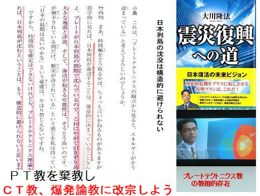 以前、地震爆発論学会は地震学者である前原子力規制委員会・委員長代理の島崎邦彦氏の更迭を求める運動([1971]、[1975])を展開しました。 現在、原子力規制委員会には地震学者が一人も存在しない布陣になっていますが、地質学者の石渡氏も「活断層」の存在を信じておられるようで困ったものです。 活断層理論は嘘です。 トランプ大統領が「地球温暖化」はでっち上げであると見抜いているように、「活断層」もでっち上げです。 こんなことが分からない「日本の知性」は情けない限りです。 「活断層理論」とか「プレートテクトニクス理論」という「でっち上げ理論」で日本の社会は「シロアリ」に蝕まれるように衰退していきます。 なんとか、「シロアリ駆除」をしないといけません。 韓国は「恨の思想」や「事大主義」というシロアリに蝕まれて国家が危険な状態になっていますが、現代日本のシロアリは「科学的無知」と言ってもいいでしょう。もちろん彼らは「唯物論科学」の信奉者ですし、比喩で言えば「ピロリ菌」学者です。 地震学者も地質学者も、そして、マスメディアも、勿論国民全員が「無知の知」を知らなければいけません。特に地震に関しては無知です。 無知であることを知ってください 本当に何とかしないと、「間違い地震学が国家を滅ぼす」ということになってしまいます。 youtubeのコメントには、 『無知どもが法則を語るんじゃねぇよw』とか、 『余りにも、余りにも不勉強な知識(中学生程度の知識)をもっともらしく、疑問が多いと話しておられる。大陸には、海でできた地層は残っていることは、江戸時代の頃から分かっている事実。プレートテクトニクスは、否定していません。素人の人は、信じてしまうかもしれません。 発言の自由が保障されているから、できることなのです。』 というものがありますが、『無知』」とは恐ろしいものです。実際には中学生にウソを教えているのが現在の地学教育です。地震学者たちに送った公開質問状(島崎氏への質問状をリンクします)に答えてから、再度コメントをお願いしたいと思います。 ロシアのベロウソフ教授は「プレート仮説はまったく無意味で不毛の理論だ」と言っています。教授の「構造地質学」(Vol.3 p280 築地書館)を読んでみてください。