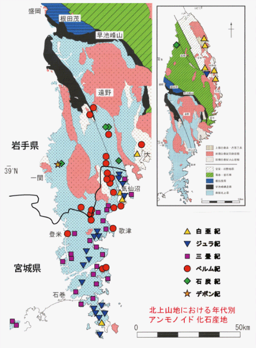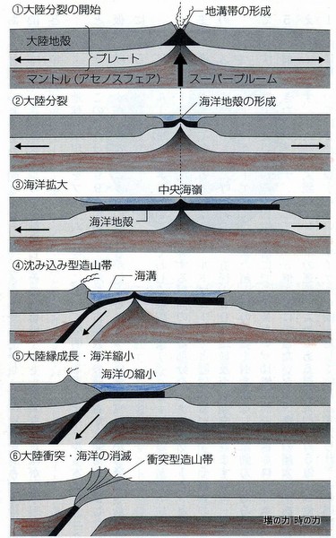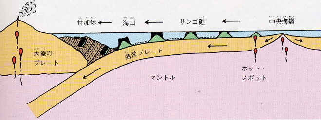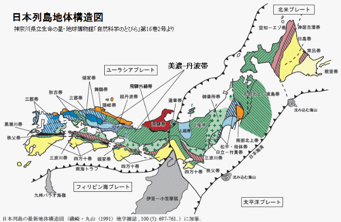 プレートを動かす力、 注: 「化石から見ると、日本列島の最古の岩石は、飛騨、北上産地、高知などに分布している。」 そうですから、大仙付近が最古でなくてもいいのかもしれません。 |