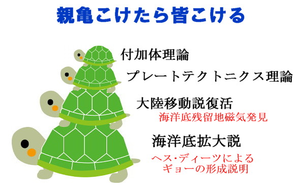 | 2466 Date: 2017-05-02 (Tue) 親亀こけたら皆こける:藤田先生の慧眼 付加体理論は真実であるかのような空気が地球科学の世界に蔓延しています。 しかし、ベースにあるのは、プレートテクトニクス理論であり、そのベースには大陸移動説、そして土台にあるのは海洋底拡大説です。 まるで親亀の背中に、小亀、孫亀、ひ孫亀が乗っているような関係です。それぞれに独立した論理的基礎理論があるわけではないので、親亀がこけたら皆こける関係です。([686]、 藤田至則著「地質への招待」p.182参照) ![]() 藤田至則先生の理論を支持するわけではないですが、「親亀こけたら皆こける」論は慧眼だったと思います。 石田理論で解説するようにギョーはテプイやテーブルマウンテンと同じメカニズムで極域の氷河の中で生まれたとするほうが合理的で説得力があります。 親亀がこけたのですから、皆こけるのです。プレートを動かす力はありませんし、付加体を削り取る力も存在しません。 プレート論、付加体論からは撤退するべきです。 |