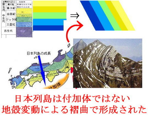 | 2452 Date: 2017-04-21 (Fri) 付加体は一つのジオポエトリーに過ぎない [2451]では「放散虫革命」がなぜプレートテクトニクス理論の認定に結びつくのか理解できないとコメントしました。 放散虫は示準化石になること、古い時代の地層に新しい時代の放散虫が見つかること、などから沖合いからプレートに運ばれてきて「付加体」となったという話が載っていますが、そのようなジオポエトリーによらなくても、ニューオフィス38に示す付加体(四万十層群)の説明は可能であります。 ![]() ![]() 付加体説でなくとも褶曲説で説明ができる 青矢印の方向に日本列島は成長していることになっているが・・・ 高知湾は白鳳地震で大陥没していて、陸地が広がっている形跡はない 写真の褶曲は左右を反転させて表示しました。 小規模なものは、日南海岸に見られる「千畳敷」のような傾斜した地層になるわけです。湾曲した褶曲構造はアルプスでもヒマラヤでも見ることができます。 ![]() 日南海岸の千畳敷 ーーーーーーーーーーーーーーーーーーーーーーーーーーーーーーーーーーーー 室戸岬は付加体四万十帯に属します。四万十帯は、安芸(あき)構造線とよばれるもので、南北に2分されます。北側の古い付加体を四万十帯北帯、南側の新しいものを四万十帯南帯と区分しています。北帯は、おもに白亜紀の付加体、南帯はおもに第三紀の付加体からできています。 付加体には上で述べたように海洋プレートの破片が入り込むことは、ごく当たり前に起こっています。ところがこの斑レイ岩は、まわりの地層(前期中新世の津呂層)に貫入している貫入岩であることがわかりました。 ![]() 室戸岬に見られる付加体の中のタービダイト層 ..... すさみ町天鳥海岸の褶曲 タービダイト(乱泥流堆積物)とは、砂や泥が海水と混ざった流れ によって海底に降り積もってできたシマシマの地層のこと、と通説では説明されている ここにも、プレート論の破綻が見えています。 プレートテクトニクスというジオポエトリーを捨てて、「地殻は浮沈と滑動を繰り返している」というクラストテクトニクスに切り替えないと、紹介したような「不思議な火成岩」の説明もできませんし、その他の「地球上の謎」も解決しません。 ニューオフィス19「伊豆半島は海の向こうから来たのではない」にも紹介したNHK「地球大紀行」の上田誠也氏の解説記事では、「大陸が大きくなるのは、付加・衝突テクトニクスである」、「アジア大陸そのものもまた、外来地塊の集合であることがだんだん明らかになってきている」と暴走気味になっています。 最後には「インドの衝突によってユーラシア・プレートが大変形を行っていることは明らかであろう。プレートは衝突すれば変形するのである。となると、不変形性からプレートは剛体であると主張したプレートテクトニクスは何であったのか。移動する大陸や拡大する海洋が変形しないのは、剛体だからではなく、衝突がおこるまでは大きなストレスを受けないからに過ぎないのではないか。この辺りが次の世代のトピックになるだろう。」と大暴走であります。 次世代の若者を迷宮の中でミノタウロスの餌食にならないようしてあげないといけません。 勇断を発揮して、「壁」を撤去しよう!