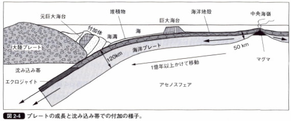 とあります。 シャッキー海台に見られるのは「平頂な台地に新しい火山が形成」されるケースです。平頂な台地は極域の氷底湖内部での火山活動で形成されたものであり、新しい火山は極域を脱出して、温帯域に移動してからの火山活動によるものです。噴火の時期がまったく違っている筈です。 次の図は[1813]に紹介した、マリアナ海溝付近のギョーを示すものです。 ![]() ![]() [1813]ギョーの形成(3)より 2000mの沈下というのはムー大陸が沈降したときに起きたことなのかどうかは、分かりませんが、斉一論的な変化としての変動ではなく、激変的な変化による沈降だと思います。沈降・隆起は激変的に起きていた可能性があります。 次に、「海洋プレートの成長」に関しての矛盾を解説します。定説による解釈ではあると思うのですが、巨大海台が「剥ぎ取られる」という解釈は始めて接しました。日本海溝では海山が潜り込んで「東北大震災の原因」になったという解釈もあります([1491]、[1710]などを参照)。 ![]() 海山は潜り込めるが、海台は潜り込めない? なぜなの?その違いは何? 「海山」は潜り込み、「海台」は剥ぎ取られる、というメカニズムを合理的に説明する論理はありません。 |